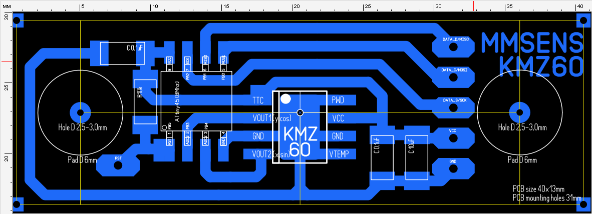 =VIRPIL=mega_mozg_13 Опубликовано: 10 сентября 2014 Опубликовано: 10 сентября 2014 PS про KMZ60 Утащил "картинки" в свою кладовочку Прошу "немного позже" пнуть меня в сторону "другой темы" Спасибо! первая это аналоговый вариант прямо "в лоб", будет работать везде где можно воткнуть SS495a. вот только размах подкачал, сигнал kmz60 отвечает не "от 0 до 5", а от "0+0.7 до 5-0.7" примерно треть отсетов АЦП за бортом, такая специфика всроенного усилка. второй это цифровой, будет работать только с контроллером который понимает его протокол связи, сейчас это только мой "mmjoy" зато на выходе возможен угол хоть в 180 градусов и вагон знаков точности после запятой.