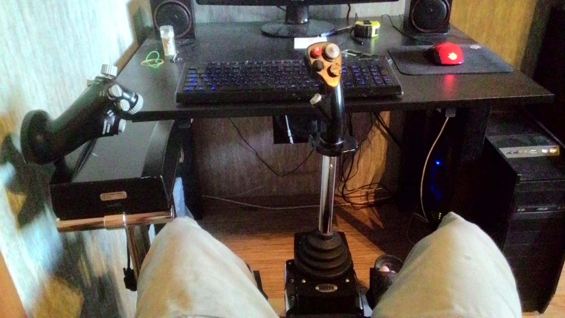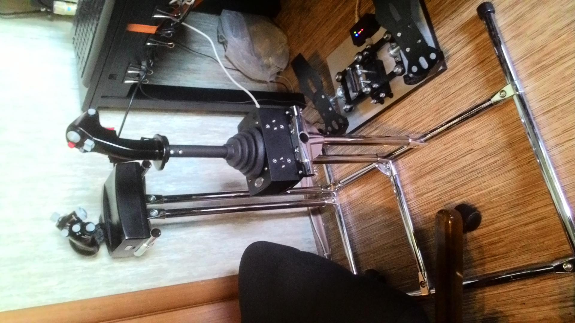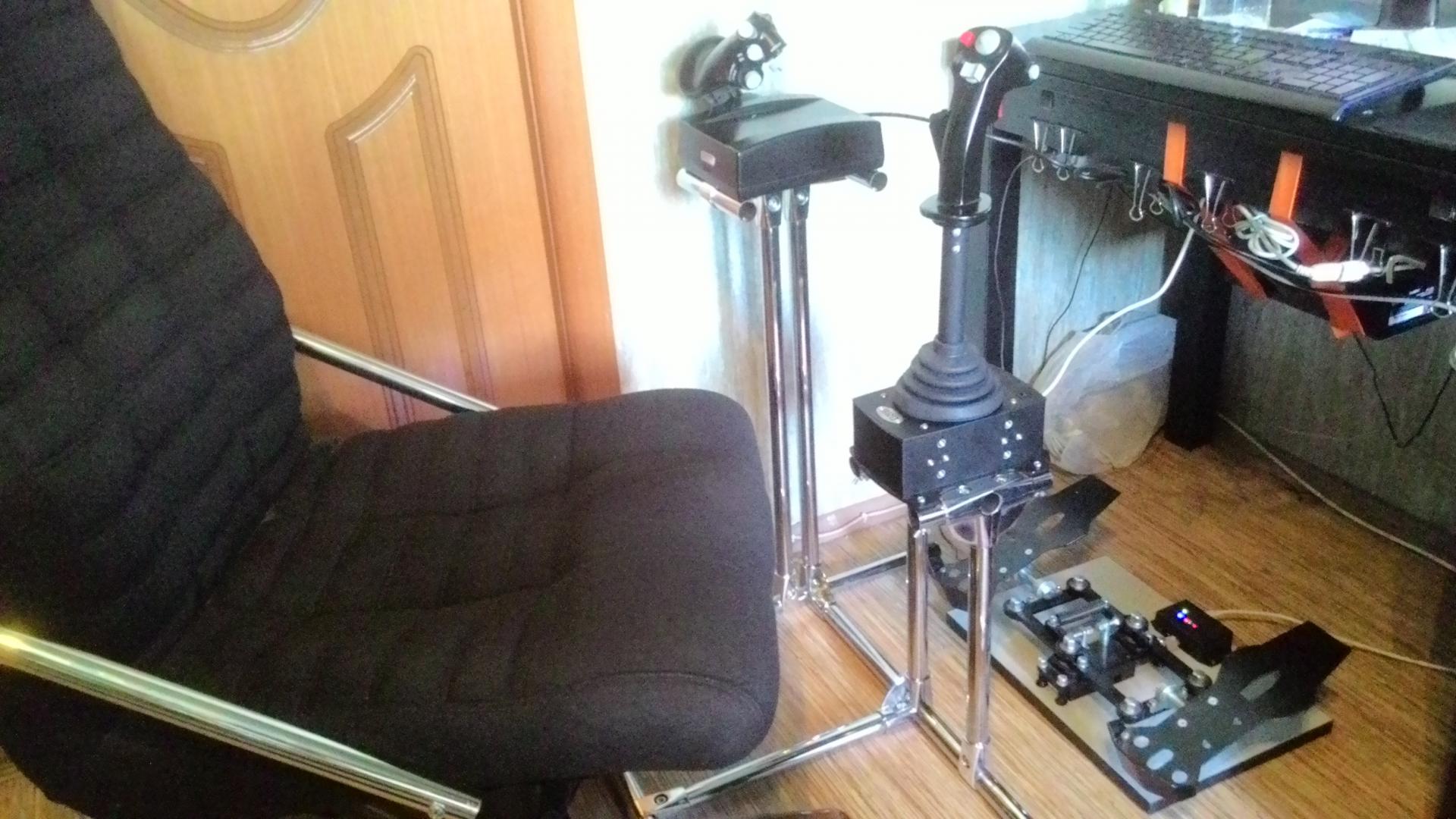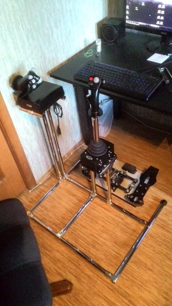 veterok Опубликовано: 21 июня 2016 Опубликовано: 21 июня 2016 На фото всё видно, ни о каком настольном варианте речи и не шло. Стул вплотную придвигается к джою, джой никак не мешает ногам, можно свободно крутить педали. Просто труба аkа шток идёт в комплекте довольно-таки длинная, довести до ума можно самому, "под себя" так сказать. Ну, не то, чтобы длинная - нормальная, как раз такая, самая-самая! PS: Сейчас мне из Китая должна подушка под поясницу приехать, надевается на кресло. Будет намного удобнее, хотя и сейчас не жалуюсь (меня хватает на 5-6 часов с небольшими перерывами, если уж засижусь). Ключевое слово "под себя". Если удобно, значит сделал правильно. Просто под меня большой ход ручки предпочтительнее. Вроде бы, если не ошибаюсь, всего 50-60мм срезал, на точность не повлияло. Но зато механика стала ощутимо лучше держать. В данном случае, если уж очень захочется, то шток можно будет сделать длиннее, ибо трубы стоят не дорого и я нашел место рядом с домом где их можно приобрести. Из таких вот труб и сделана стойка. Тут, наверное, правильнее было бы назвать джойстик околостульником Кто то выкладывал фото примерно такой конструкции с обычным настольным джойстиком, да я и сам делал нечто подобное с сайтеком 65-ым. Вообще я очередной раз переделал свою кострукцию буквально в выходные, до этого было наподобии и тоже из джокера. Правда в моём случае верхняя плоскость корпуса была под седушкой. И новой конструкцией уже не на 100% доволен, правда лучше чем было.