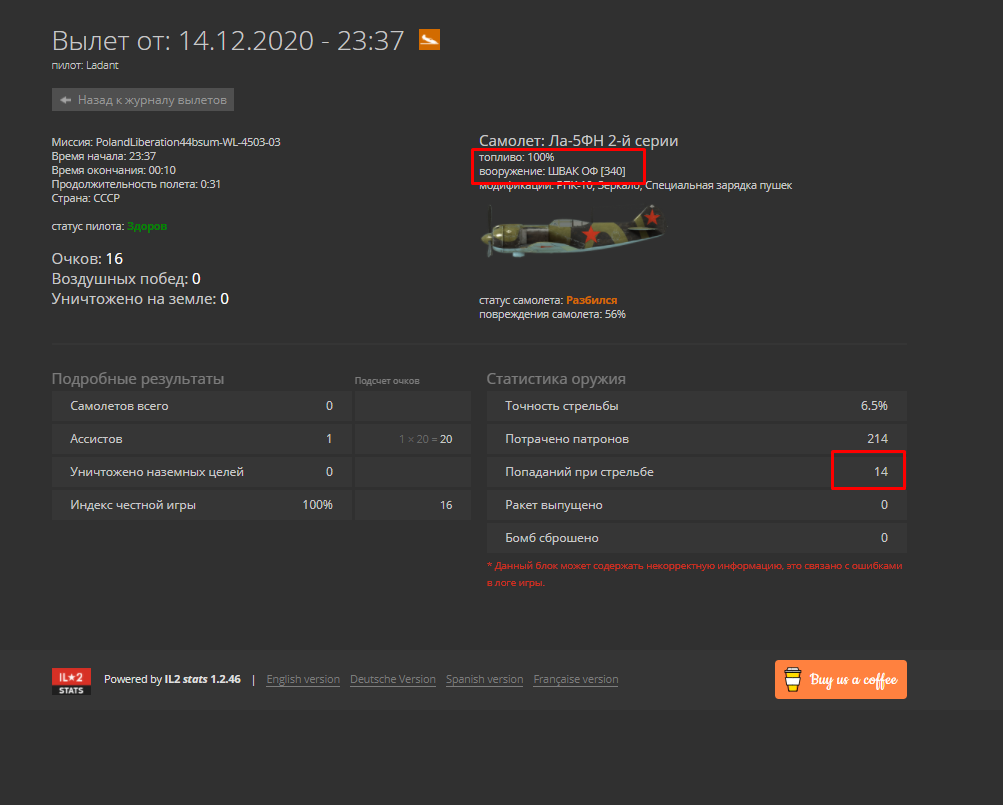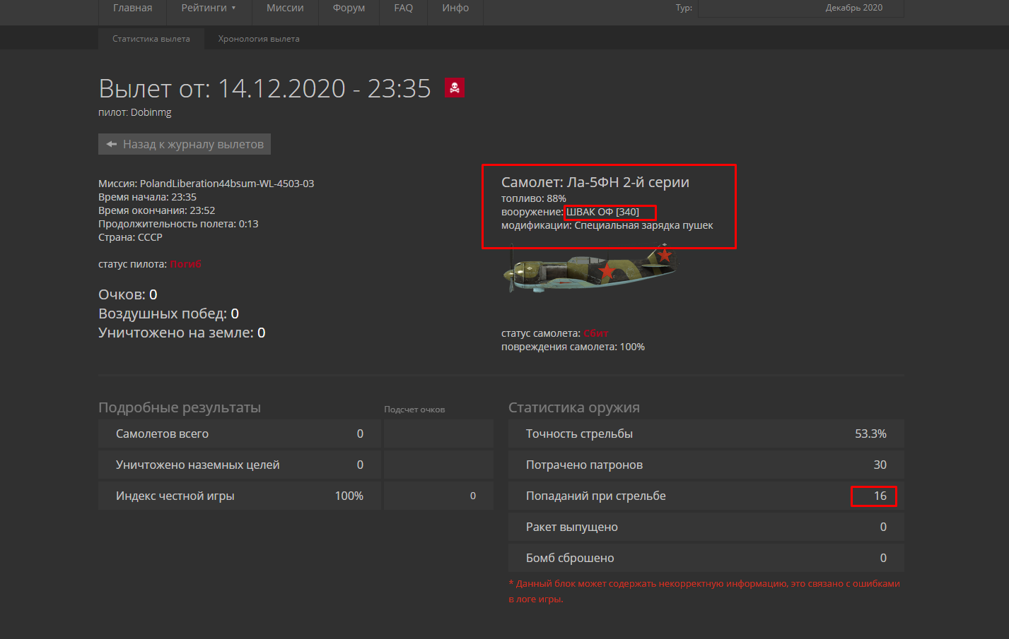 1CGS -DED-Rapidus Опубликовано: 16 декабря 2020 1CGS Опубликовано: 16 декабря 2020 Проблема в статистике) Если запустите у себя сервер с логами, многое откроете для себя. Например как при одном событии Atype:1 (попадание), появляется следом 1-2-3-10-15(пожар например).... событий Atype:2 (повреждение). Прошу в дальнейшем воздержаться от подобных выпадов. Буду удалять посты. 20 часов назад, Skv_Neon сказал: Возник вопрос по поведению самолётов после потери рулей. Самолёты семейства Як без рулей так и должны себя вести (склонность к пикированиюв перевернутом положении) ? Плюс интересно почему различное поведение Ла-5 и Ла-5 ФН. Спасибо, проверяю. 1 1 1