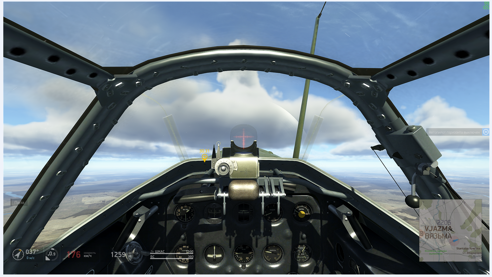 Sashka13 Опубликовано: 4 марта 2023 Опубликовано: 4 марта 2023 Краткое описание ошибки: проблема с обзором в По-2. Детальное описание ошибки, условия обнаружения: просьба увеличить максимальную скорость на которой можно полностью сместить взгляд за борт для наблюдения цели и бомбометания через щель в правом нижнем крыле. Сейчас уже на скорости 40 км/ч аватар начинает прятать голову от набегающего потока а на скорости 60 км/ч и выше остаётся узенькая щель, через которую уже невозможно нормально прицелиться. Сопроводительные материалы (видео, скриншоты - используйте спойлеры): Скрытый текст Максимальное смещение в полёте, скорость видна на указателе: Максимальное смещение на земле, скорость видна на указателе: Конфигурация вашего компьютера, версия ОС и драйверов, установленное ПО: 1 2