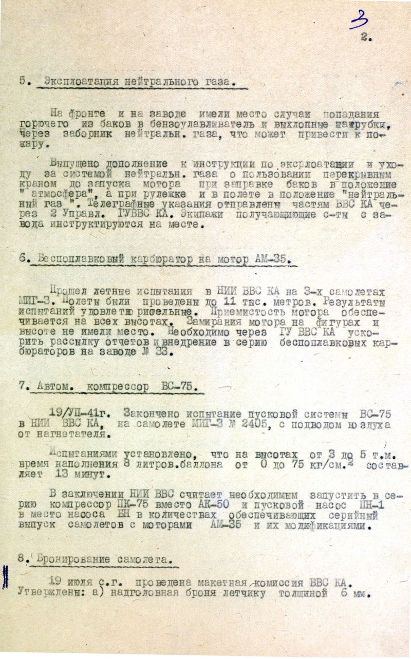 =RP=Levik Опубликовано: 26 января 2017 Опубликовано: 26 января 2017 (изменено) Краткое описание ошибки: Несоответствие ЛТХ Миг-3 в игре реальным ЛТХ Детальное описание ошибки, условия обнаружения: В дополнение к предыдущему посту №227. По ссылкам ниже исторический документ: "Сводка по доводкам самолета Миг-3 по состоянию на 21 июля 1941 г." по результатам гос. испытаний модифицированного самолета МИГ-3 АМ-35А ВИШ-22Е производства завода № 1 №№ 2115 и 2107. На 5-й странице указаны скорости в горизонтальном полете, так на высоте 7800 Миг должен развивать 640 км/ч. Сопроводительные материалы (видео, скриншоты - используйте спойлеры): http://forum.aviaskins.com/attachment.php?attachmentid=43588&d=1478186357 http://forum.aviaskins.com/attachment.php?attachmentid=43589&d=1478186357 http://forum.aviaskins.com/attachment.php?attachmentid=43590&d=1478186357 http://forum.aviaskins.com/attachment.php?attachmentid=43591&d=1478186357 http://forum.aviaskins.com/attachment.php?attachmentid=43592&d=1478186427 http://forum.aviaskins.com/attachment.php?attachmentid=43593&d=1478186427 http://forum.aviaskins.com/attachment.php?attachmentid=43594&d=1478186427 http://forum.aviaskins.com/attachment.php?attachmentid=43595&d=1478186427 Ниже в спойлере текст акта гос. испытаний, к сожалению скана самого акта не нашел. 26 марта 1941 года зам. наркома обороны начальник ГУ ВВС генерал-лейтенант авиации РычаговАкт гос. испытаний модифицированного самолета МИГ-3 АМ-35А ВИШ-22Е производства завода № 1 №№ 2115 и 2107Отв. исполнители:Начальник 3 отделения 3 отдела НИИ ВВС в/инженер 1 ранга ВоеводинВед. инженер в/инженер 3 ранга ОноприенкоВед. летчики:Капитан ПрошаковВ/инженер 2 ранга КочетковЦель испытанийКонтрольное определение летных характеристик, дальности, устойчивости и штопорных свойств самолета.Оценка серийного самолета в сравнении с опытным в части конструктивных изменений по устранению дефектов, улучшению летных данных и эксплуатации.Контрольные испытания вооружения и спецоборудования самолета.Объект испытанийГос. испытания проходили два серийных самолета МИГ-3 №№ 2115 и 2107 с мотором АМ-35А и винтом ВИШ-22Е, оба производства завода № 1.Самолет МИГ-3 является модификацией самолета МИГ-1 и имеет следующие основные отличия:Установлен дополнительный протектированный бензобак, емкостью 250 л в фюзеляже под сидением летчика.Для сохранения эксплуатационной центровки вынесен на 100 мм вперед мотор, путем удлинения моторной рамы. Водорадиатор сдвинут вперед.Установлены колеса размером 650х200 мм.Увеличено поперечное V крыла с 5 до 6 градусов.Установлен пластинчатый водорадиатор марки ОП-310 вместо сотового.Запротектированы центропланные бензобаки.Нижний щиток шасси перенесен со стойки шасси на центроплан.Установлен новый прицел ПБП-1а.Установлен стандартный механический сбрасыватель АСИ-140.Установлены стандартные замки Д-3-40 для подвески бомб калибром от 8 до 100 кг.Сняты балки для РС-82....баков и других изменений полетный вес с-та увеличился с 3100 до 3355 кг.Сроки испытанийНачало испытаний 27 января 1941 годаКонец испытаний 26 февраля 1941 годаПолетных дней – 14Нелетной погоды - 13Выходных (проведение кросса) - 3Ремонт матчасти - 1Из 14 полетных дней, 3 дня хорошая погода была только 2-4 часа.Краткий результат испытанийЗа время испытаний самолетов МИГ-3 в НИИ ВВС на обоих самолетах произведено 67 полетов общей продолжительностью 24 часа 40 минут.Испытаниями получены следующие летно-тактические данные самолеты:1. Максимальная скорость у земли – 495 км/час2. Максимальная скорость на 5000 м – 593 км/час3. Максимальная скорость на расчетной высоте 7800 м – 640 км/час4. Время набора высоты 8000 м п