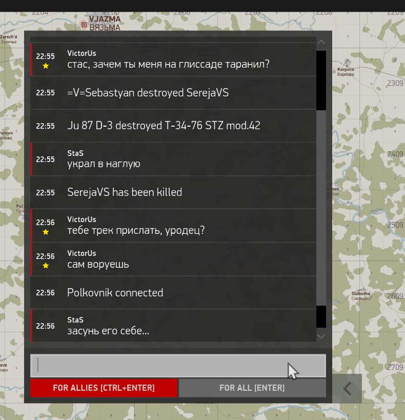 VictorUs Опубликовано: 3 сентября 2016 Опубликовано: 3 сентября 2016 Я как раз собирался предупредить летающих на нормале. Небезызвестный Stas оказался идейным тимкилером. Он посчитал, что у него украли. Не поленился полкарты красться на шести и уже на глиссаде протаранить. Далее диалог в чате. На картинке, приведенной коллегой начало опущено. Если кто не поленится просмотреть трек https://yadi.sk/d/ijxvemEUujRnU, то видно, как и мне пытались помочь. Я стараюсь не помогать добивать. Если противник не маневрирует активно и не пытается стрелять по соцветнику. Если я буду (не буду, не мое))) мстить всем тем, кто у меня украл и остальные присоединятся к этому процессу - это будет бардак. И умрет удовольствие. Тем более, что в горячке не все заметно. По крайней мере я, если явно виноват, нахожу в себе силы просить извинения. В этом случае речь не столько об уважении, сколько о явном нарушении правил сервера. Их всего два и одно из них - не бить своих. Безусловно. С уважением. Conflict.bmp