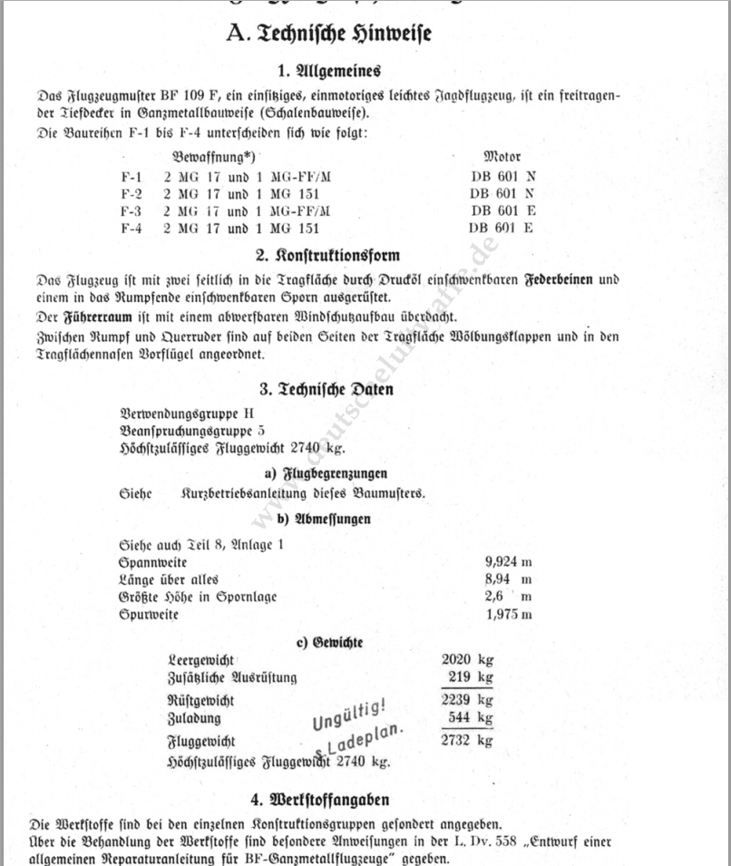 JGr124_Barakuda Опубликовано: 19 ноября 2014 Опубликовано: 19 ноября 2014 Bf.109F-2 Длина 8,64 Размах крыла, м 11,08 Нормальная взлетная масса, кг 2800 Bf.109F-4 Длина 8,94 Размах крыла, м 9,92 Нормальная взлетная масса, кг 3150 Bf.109G-6 Длина 9,02 Размах крыла, м 9,92 Нормальная взлетная масса, кг 3200 как то так Но больше интересно вот это Вооружение Bf 109 F-2: 2×7,92-мм пулемёта MG 17, установленных сверху двигателя (Боекомплект — 500 патронов на ствол), 2×20-мм пушки MG FF (нем. FF = "Flügel Fest" - здесь рус. вмонтированный в консоль крыла, с 1941-го года MG FF/M, нем. М = Minenmunition - рус. фугасные патроны), вмонтированных в консоли крыла (Боекомплект — 150 снарядов на ствол). Сколько таких F-2 было? Всем привет от Штефана ))) Все Bf1o9 , начиная с F и заканчивая К-серией были 9,02m ДЛИНОЙ и имели один и тот же размах крыла, как и само крыло, 9,924m!Единстваные разницы в крыльях были; 1) разные по строению заслонки радиатора (на F-Serie с двойной стенкой и выпускной верхней щелью) 2) различные (укреплёные под Gondelbewaffnung) и начиненые електрикой внутрености крыла (GM1) 3) различные вырезы ниш под посад.-главное шасси 4) различные законцовки крыла и пос.-огни в них 5*) различные вырезы под удлинёный Элерон ( до сих пор не доказано фотодокументально)* *последнее имеется лиш в описании ETL на 109F.Все Bf1o9 , начиная с F и заканчивая К-серией были 9,02m ДЛИНОЙ и имели один и тот же размах крыла, как и само крыло, 9,924m!Единстваные разницы в крыльях были; 1) разные по строению заслонки радиатора (на F-Serie с двойной стенкой и выпускной верхней щелью) 2) различные (укреплёные под Gondelbewaffnung) и начиненые електрикой внутрености крыла (GM1) 3) различные вырезы ниш под посад.-главное шасси 4) различные законцовки крыла и пос.-огни в них 5*) различные вырезы под удлинёный Элерон ( до сих пор не доказано фотодокументально)* *последнее имеется лиш в описании ETL на 109F. Далее идет непереводимая игра слов