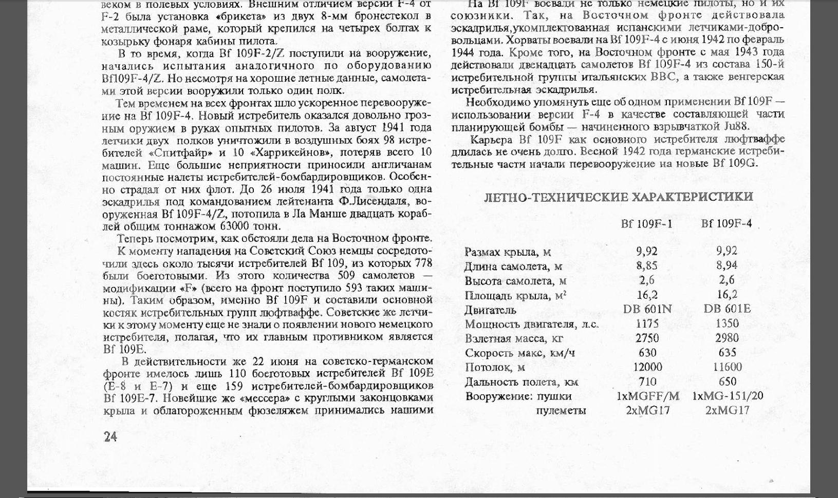 ROSS_Skipirich Опубликовано: 30 января 2016 Опубликовано: 30 января 2016 Всем привет, в свете крайнего обновления есть вопрос по ф-2, а точнее, чем же он все таки отличался от ф-4, на сколько я успел разобраться, отличным был двигатель, вместо 1175 сильного DB 601N, установили 1350 сильный DB 601Е, и установили новую пушку 1xMG-151/20, вместо 1xMG-151\15, и видимо было еще несколько не таких значительных изменений вроде установки переднего бронестекла, и как можем видеть системы ручного управления створками водорадиаторов, в результате чего, Ф-4 стал тяжелее но тем не менее мощнее за счет нового двигателя, и вроде как должен быть быстрее и скороподъемнее, однако в игре новый Ф-2 обгоняет Ф-4, с учетом того, что у обоих створки водорадиаторов установлены в одинаковое положение. Упоминания о сравнении скорости этих аппаратов нашел пока только тут http://www.airwar.ru/enc/fww2/bf109f.html В середине лета 1941 г. "Даймлер-Бенц" заявила о том, что ей удалось решить наиболее серьезные проблемы, связанные с внедрением в серию двигателя DB 601Е. Параллельно подготовили к серийному выпуску новый винт VDM 9-12010А. Следующей версией "Фридриха" по планам фирмы "Мессершмитт" должен был стать вариант истребителя со скомпрометировавшей себя мотор-пушкой MG/FF-M. Между тем, "Маузер" проинформировала главного конструктора о том, что она приступила к серийному изготовлению 20-мм варианта пушки MG 151 (ее скорострельность по сравнению с 15-мм модификацией стала меньше, но осталась на неплохом уровне - 750 выстр./мин при начальной скорост и снаряда 790 м/с). В результате, было решено вооружать "Фридрихи" пушками MG 151, причем на модификацию F-3 ставили пушку с калибром ствола 15 мм, а на F-4 - 20-мм ствол. Вскоре стало ясно, что последний вариант гораздо более популярен у летного состава - его и строили в больших количествах, начиная с мая 1941 г. на заводе в Винер-Нойштадте, и с июня - на "Эрле".Максимальная скорость машины на всех высотах благодаря более мощному двигателю возросла на 10-25 км/ч (относительно Bf 109F-2), улучшилась и скороподъемность. Конструкторы улучшили протектирование бензобака, а защиту пилота усилили, установив наклонный бронезаголовник. Некоторые машины оснащались дополнительной многослойной перегородкой, состоявшей из пачки дюралевых листов, монтировавшейся позади бензобака. Эти листы легко пробивались пулей винтовочного калибра, однако на них пуля оставляла зажигательный состав и, кроме того, теряла устойчивость, подходя к основной броне уже не носиком, а боком. На фонаре кабины установили лобовое бронестекло (такое же 60-мм стекло получили и доработанные Bf 109F-2, но оно монтировалось снаружи как бы в дополнение к нормальному небронированному козырьку). На части машин бронестекло установили и позади пилота в бронеспинке для улучшения обзора назад. и тут ну и в общем по характеристикам у Ф-2 разные источники обычно пишут от 505 до 525 км\ч, а у Ф-4 от 515 до 535 но в игре пока намерил наоборот https://www.youtube.com/watch?v=5WmZlTmHQ9k помогите разобраться.