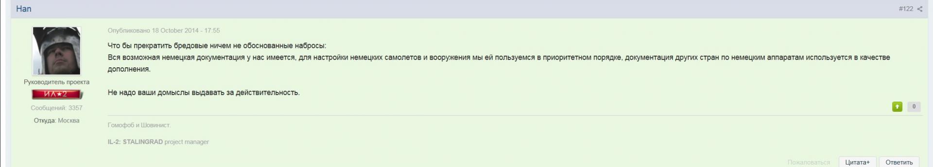1CGS BlackSix Опубликовано: 8 октября 2015 1CGS Опубликовано: 8 октября 2015 BlackSix! А что по этим постам? : http://forum.il2sturmovik.ru/topic/2396-pochemu-samolyoty-ne-razvalivayutsya-na-skorosti/?do=findComment&comment=339275 ( + пост от AlexVVV) У Скрипича перегрузка на выводе 8,6 в течении 4с, а на видео Алекса вообще разрушающая перегрузка? Это и Фока так может, и у пилота физ. возможностей хватает? Вы же знаете куда и кому писать, если есть детальное описание проблемы и подтверждающие треки. Мне, как комьюнити-менеджеру, вопросы по достоверности ФМ задавать смысла не имеет.