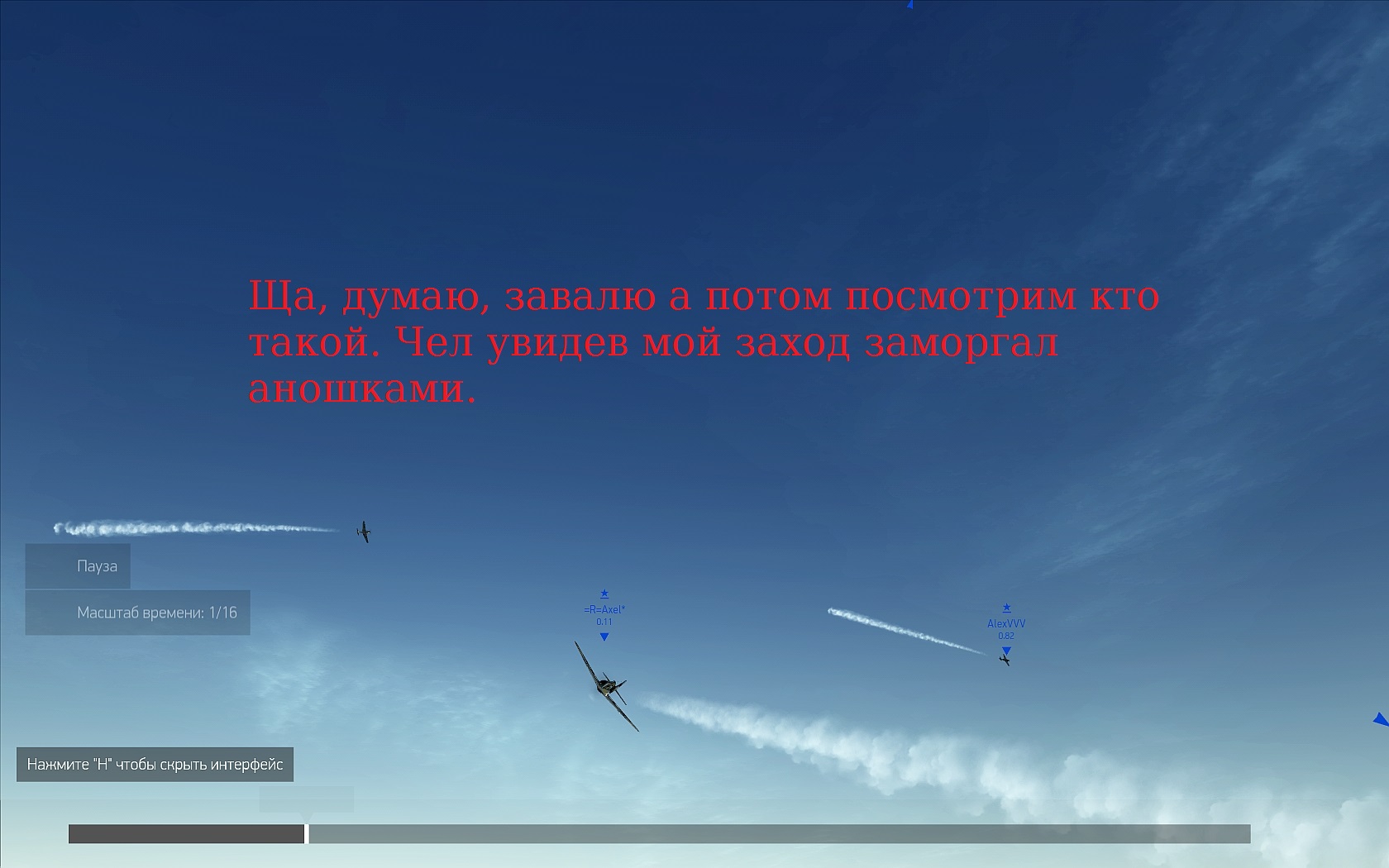 REDFOX-WL-GAGARIN Опубликовано: 1 мая 2015 Автор Опубликовано: 1 мая 2015 Наивный ты. Еще маркера над самолетами прикрутить осталось. Странная политика. С твоей стороны не меньше странностей. 1. Если ты нашел баг в игре - странно просить меня, этот баг исправить. Я не разработчик данной игры и не программирую код игры. Я не могу решить проблему с тем, что у одних игроков ты видешь маркера, а у других нет. О багах игры и подозрении в использовании читов надо писать разработчикам данной игры. У тебя странное отношение к ситуации. 2. Я не могу постоянно следить за игрой. Есть игровые админы, которым я доверяю и которые имеют права решать различные игровые ситуации. В данном случае игровой админ не посчитал нужным принимать какое то наказующее действие, а ты через его голову захотел решить ситуацию по своему. Странная политика с твоей стороны. 3. Есть масса ситуаций из историй фрэндлифаер. Первый сбитый Су2 у Покрышкина. Сбитый свой пилотом Номандии Неман. Хочешь максимального погружения в историю и при этом не исторично себя ведешь. Вот когда научишься решать ситуацию как пилот Су2 решил ситуацию с Покрышкином, вот тогда и отключу данную функцию. Странно ему видетели... 1