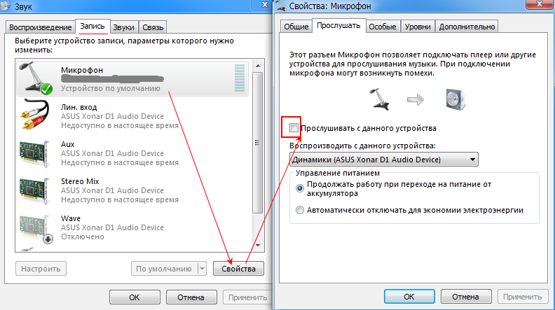 Pchel Опубликовано: 4 июня 2017 Опубликовано: 4 июня 2017 Микрофон включен? Ты случайно в операционке в Звук - Запись - Микрофон - Свойства - Прослушать галку не поставил на опции "Прослушивать с данного устройства"? 004.png Аналогично может быть и при случайном включении мониторинга микрофона в ПО, идущим с звуковой картой. 005.png Во во, и я про то же. Или уровень чувствительности микрофона завышен. А еще у меня было - кабель на звук с двумя выходами, один из которых не нужен (болтается). Так были похожие симптомы когда этот выход с другим подобным законтачился. Пока их не развел в разные стороны все понять не мог что происходит.Фон от микрофона в наушниках не должен проявляться... Хотя проверить не помешает. 1