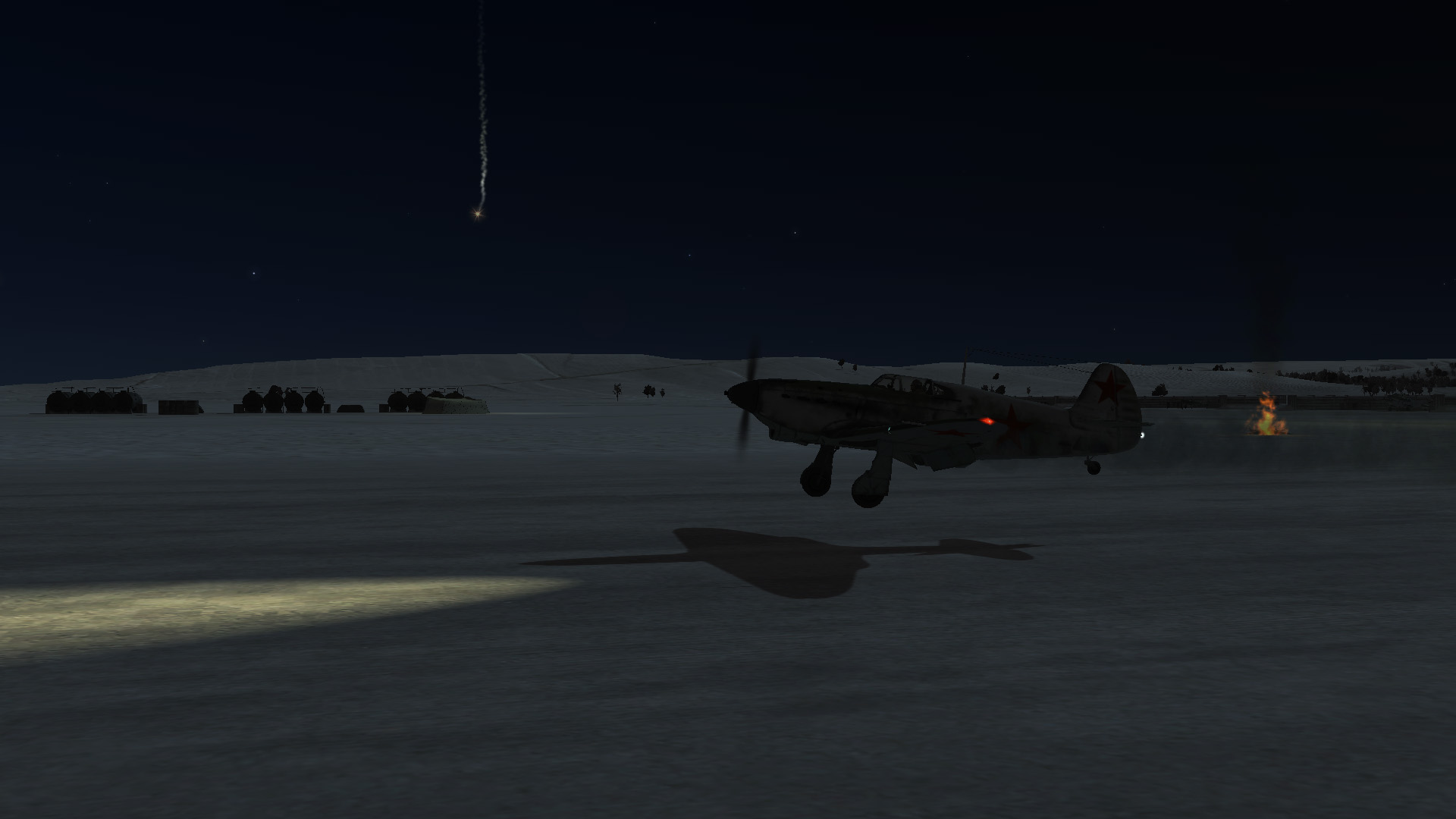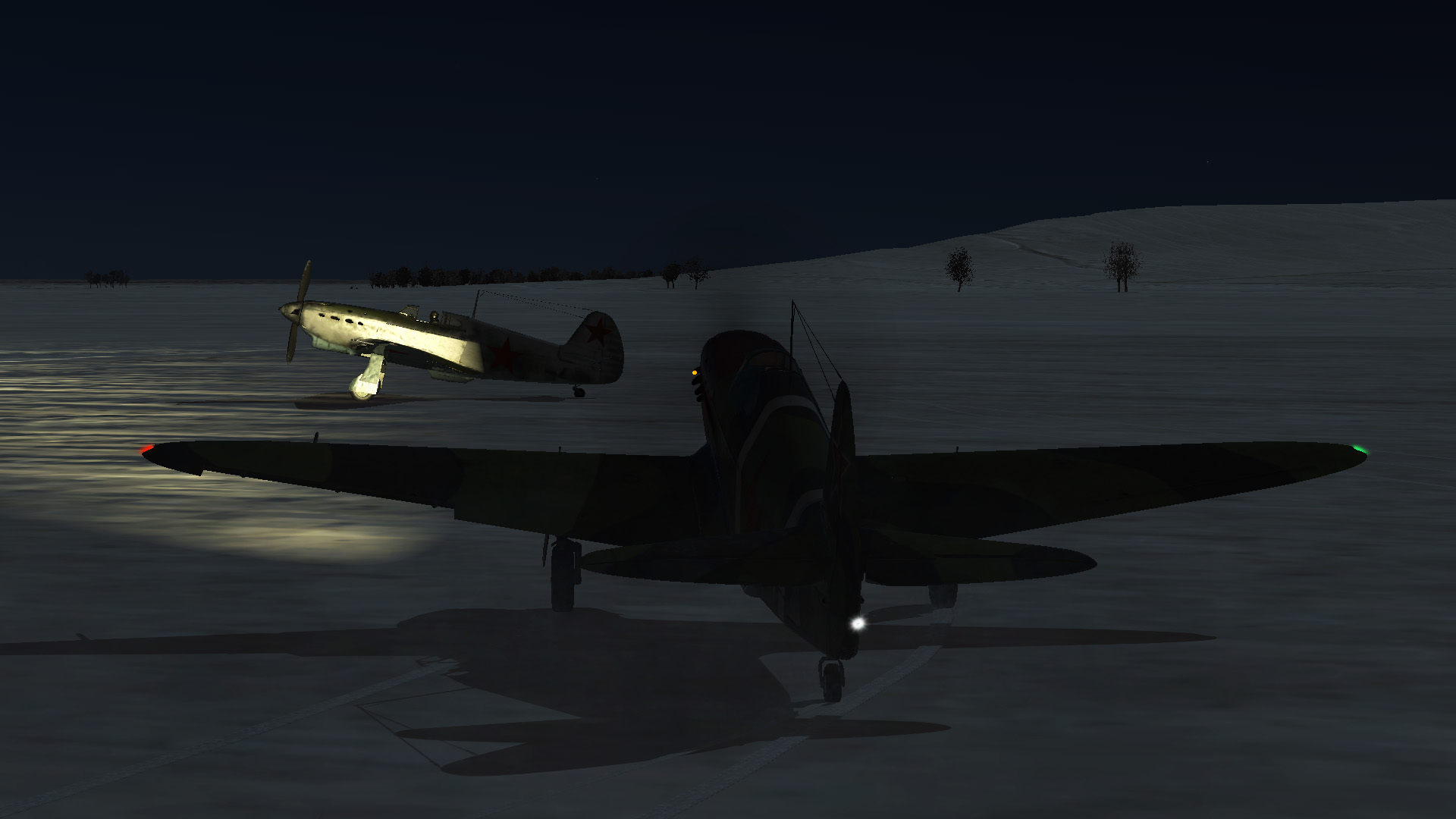 1CGS Han Опубликовано: 25 марта 2015 1CGS Опубликовано: 25 марта 2015 Захотелось мне сегодня полетать Кампанию на Яке. Выбрал перехват бомбардировщиков, скин с красным носом что бы +5 к морали и вперед. Запустил полет, и... Оп-па, ночь!Страшно – аж жуть (с). Ладно... Где наша не пропадала, летим. При подходе к цели климбился понемногу, цель профукал благополучно, увидел вот эту картину справа-сзади и... И аж осел. 3 бомбардировщика под прикрытием 4-х Мессеров. И чо с этим делать? Ладно... Где наша не пропадала, летим. Ведомому дал команду связать боем мессеров, сам полого пикирую на полном газу догоняю Хенкелей. Первый заход – не смог прицелиться, инверсия от Хенкеля скрыла его так хорошо ночью, что его в прицел было просто не видно. Не сбавляем газ, вверх на 800 метров над ним, падаем на него снова... Задымил, сваливает в сторону дома, активно снижается, снова вверх, падаем на него... Горит! Вах, хорошо горит зараза. Но ШВАК замолк, патроны ноль. Только ШКАСы. На вторую хенку процентов 20 снарядов только осталось и этого хватило только, что бы угомонить ее стрелков и пробить баки. Ладно, где наша не пропадала, у нас еще половина б/к ШКАСов. Лезем вверх, пикируем на скорости (не факт что все стрелки мертвы), зажимаем гашетку с 700м и садим с диким криком «наааа гаааааадддддтттттт!!!!!!!». Дымит больше, один двигатель повредил, но летит зараза. Еще раз вверх, снова падаем на него, снова длинная очередь – задымил теряет высоту, садиться на вынужденную в поле. Из экипажа выжил только командир, все остальные погибли... Третий Хенкель ушел огородами и его уже не найти, да и сбивать нечем. Моего ведомого не видать – погиб наверное, все таки он схватился с 4 Мессерами, если бы не он – мне бы карачун был точно. Отряд не заметит потери бойца Пошел я грустно в сторону аэродрома, самолет управляется как-то странно, смотрю – баа... Да я пока пикировал на бомберы оголтело элерон себе сорвал. Вот же шь... Ладно... Где наша не пропадала, летим. 6