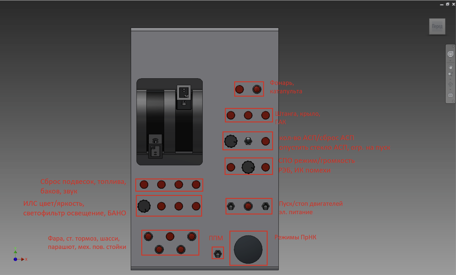 Krysnic Опубликовано: 25 июля 2017 Опубликовано: 25 июля 2017 Предусмотри небольшие дуги хотя бы над нижним рядом кнопок. Это конечно сильно зависит от "посадки", но есть вероятность, что рука ляжет на нижние кнопки при положении "на РУДе" и будут левые нажатия. Сайтек даже тумблера таким образом предохраняет на Х-55, хотя их нажать гораздо сложней, чем кнопки. И лично у меня рука постоянно лежит на этом месте. Спасибо, места маловато да и надписи хочется сделать. Дуги там только меж двух рядов получится поставить. Плюс на некоторых кнопках будет защита, по крайней мере на катапульте точно. Еще думали сделать нижнюю секцию до механики(зеленой линии) под наклоном, таким образом кнопки были бы ниже но пока фик знает.