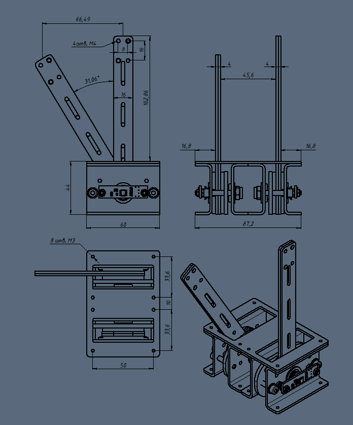 DVik Опубликовано: 2 октября 2015 Автор Опубликовано: 2 октября 2015 В связи со спросом расширяем базовое предложение Сдвоенная механика: Ход 62,12 градусов (132,98 мм по горизонтали) Крепление датчика 35 мм (винтами М3) Крепление рукоятки винтами М4 Крепление механики винтами М3 Возможна иная форма и размер штоков (по договоренности) Цена сдвоенной механики 1480р (без учета доставки) Цена одиночной механики 740р (без учета доставки) 2