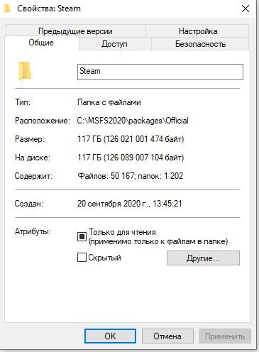 -DED-Ron Опубликовано: 20 сентября 2020 Опубликовано: 20 сентября 2020 Стим версия имеет папку d:\Steam\steamapps\common\MicrosoftFlightSimulator (без пробелов) весом 1.02Гб. И сама игра может быть на другом диске (указываешь при установке). Например, в моем случае, d:\MSFS2020 и весит ~ 97Гб (простой делюкс). И она не имеет папки MSFS2020\packages. Видимо, после распаковки, она удаляется. 1
