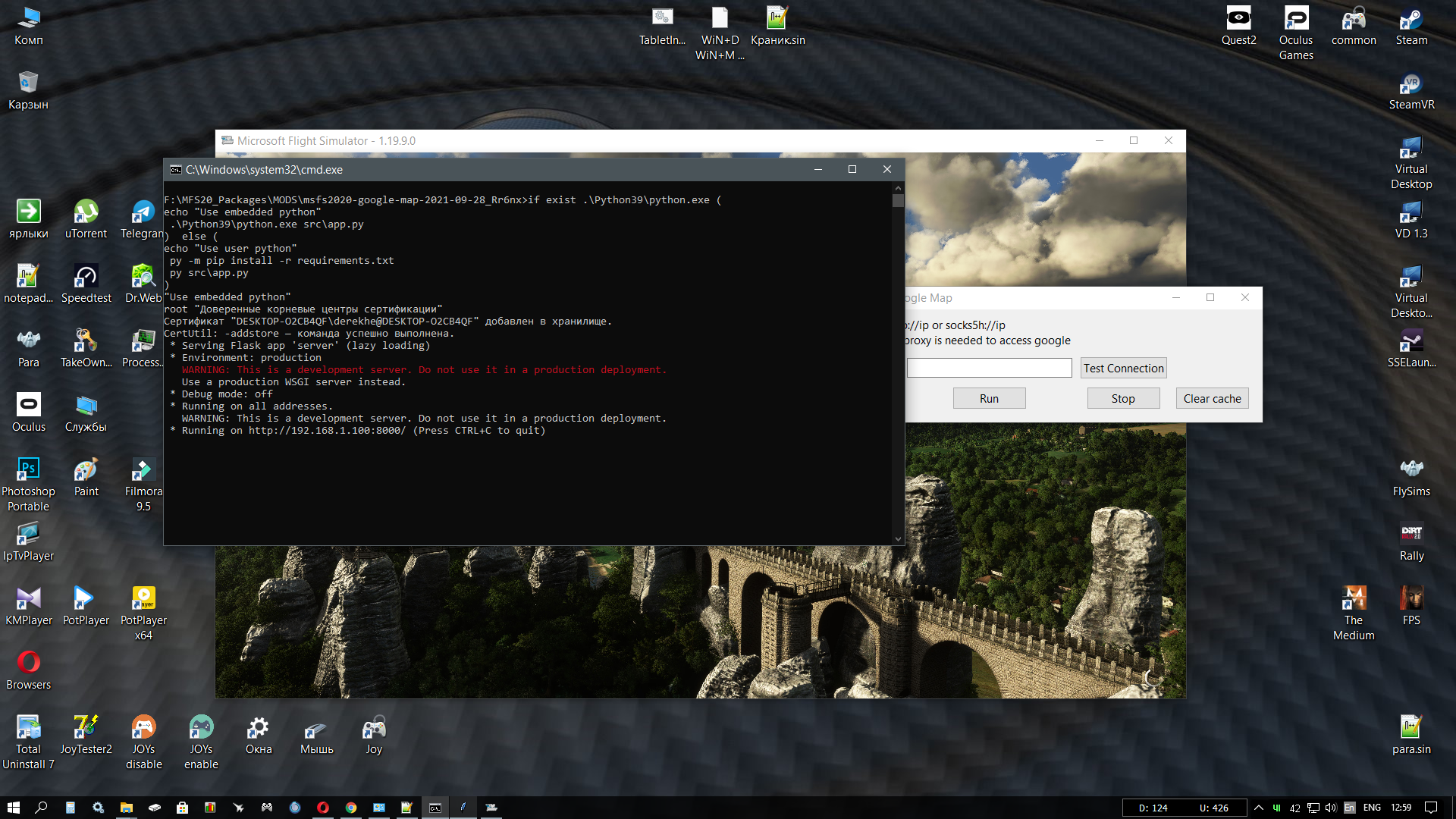 huligan Опубликовано: 9 октября 2021 Опубликовано: 9 октября 2021 (изменено) 08.10.2021 в 00:17, Rouslan сказал: Не сильно понял нафига но... MSFS 2020 Google Map replacement » Microsoft Flight Simulator чёт нифига не понял,как там им пользоваться.Запускаю батник-кидает на сайт+прокси окно какое то выскакивает тест коннект выдаёт ошибку,а что такое там надпись "покиньте бланк,если у вас гугл работает без прокси" - хз,какой бланк покидать? Дальше нажимаю Run запускаю мфс и...и нифига Изменено 9 октября 2021 пользователем huligan
