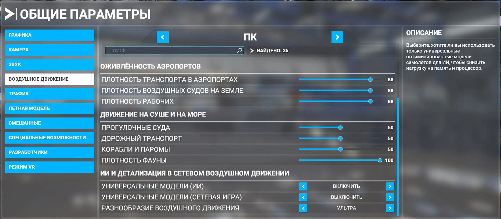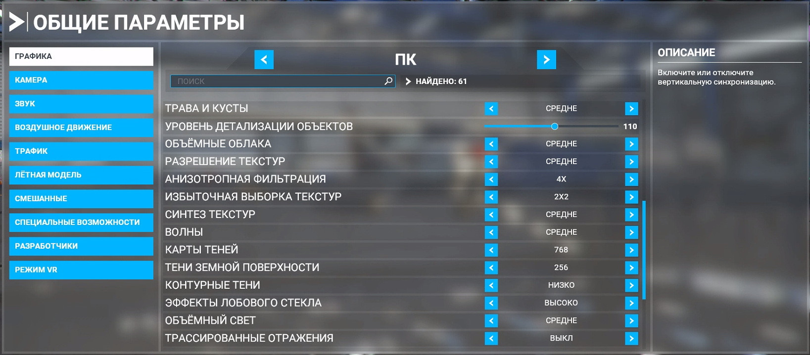 Rouslan Опубликовано: 12 ноября 2021 Опубликовано: 12 ноября 2021 4 часа назад, Alator сказал: Если не секрет для конфига в подписи какие настройки графики в симе? Вот не так давно отцу вместо сторовской, ставил стимовскую версию и сделал скрины настроек. Система у него даже чуток послабей. Процессор точно не помню какой, но это примерно то же поколение I3-I5 с частотой около 3,5. А видео 960. Скрытый текст И вот только сейчас заметил на картинках, что у него трафик отключен совсем. Непорядок. Вот что значит менюшки на русском- нихрена не понятно.