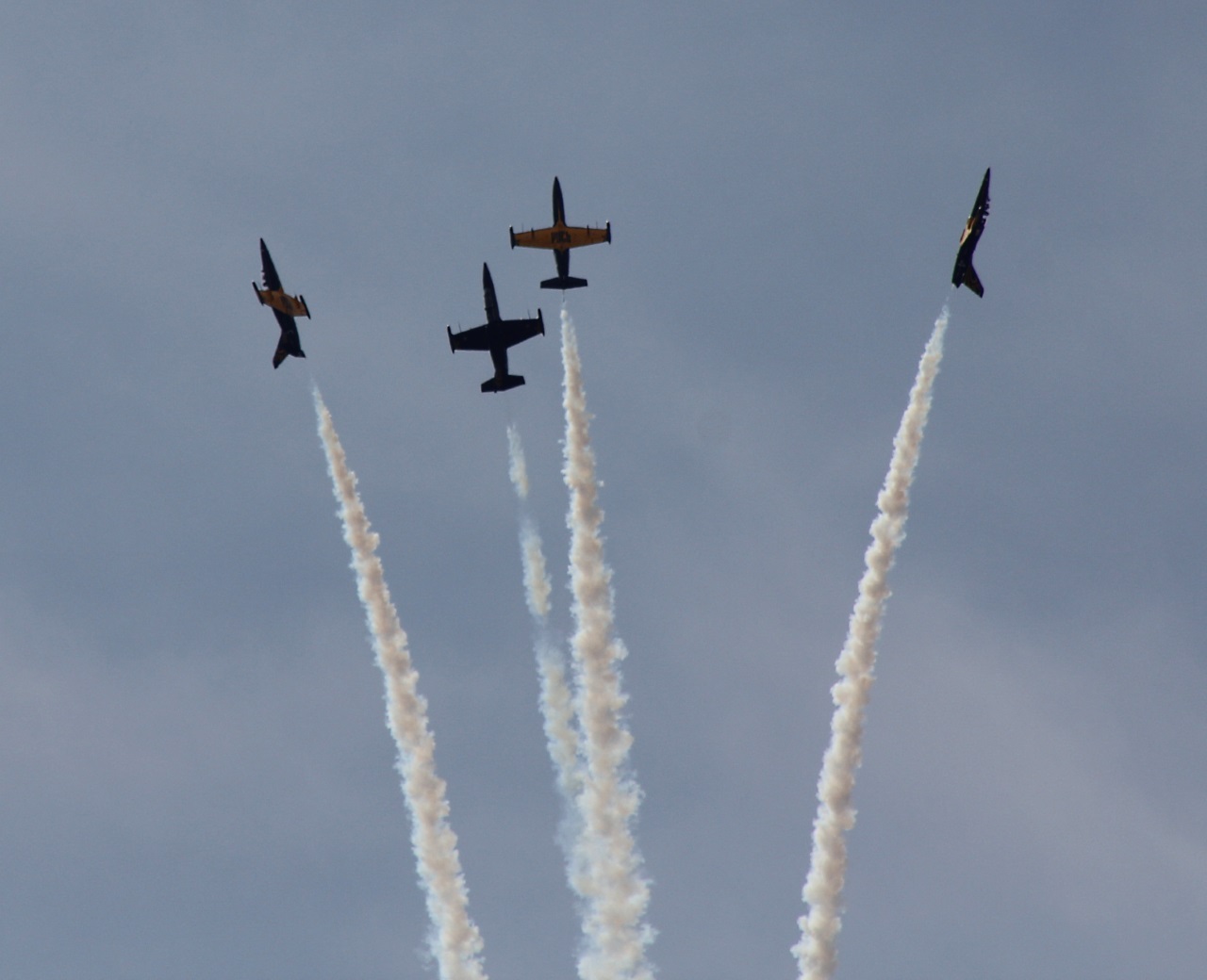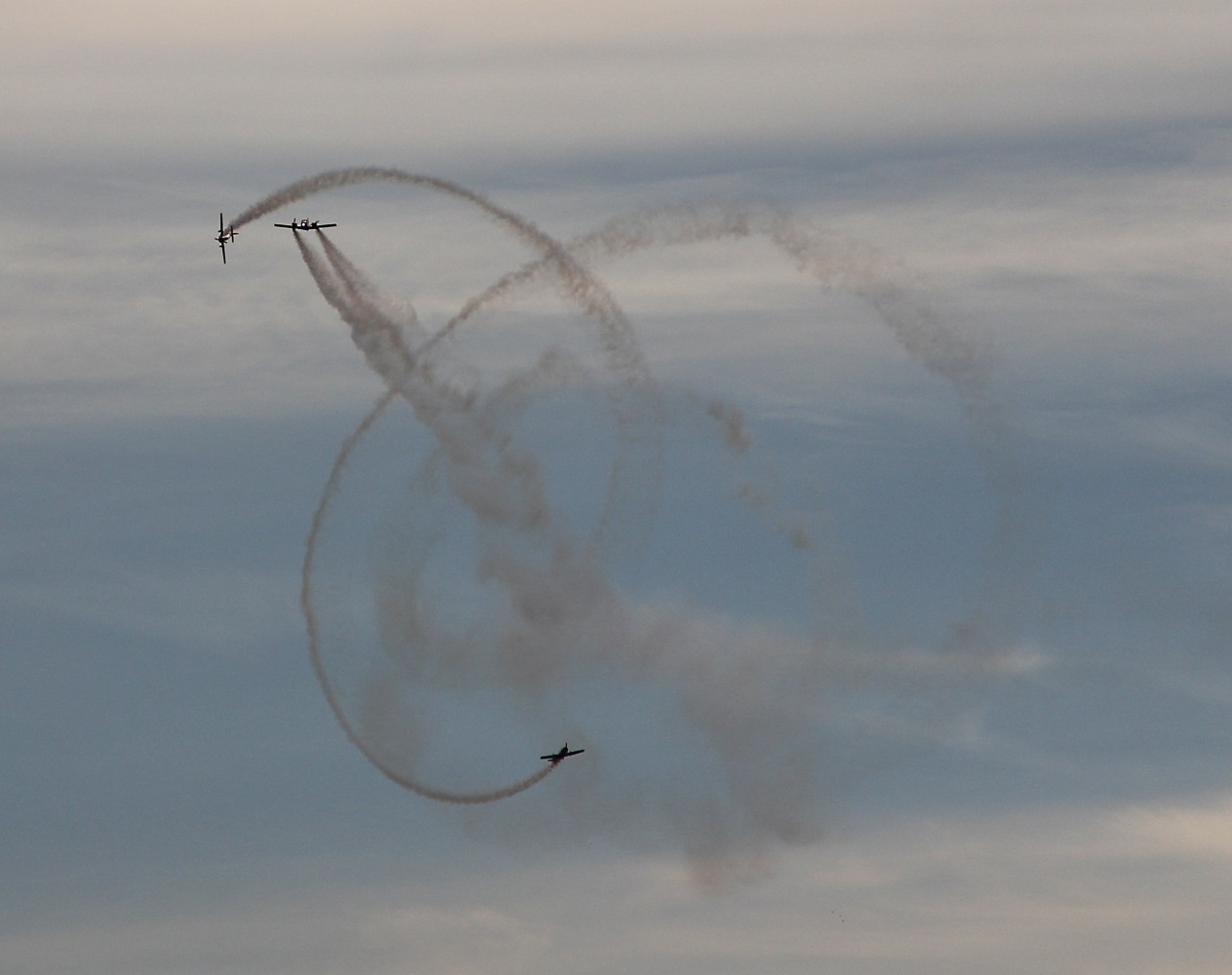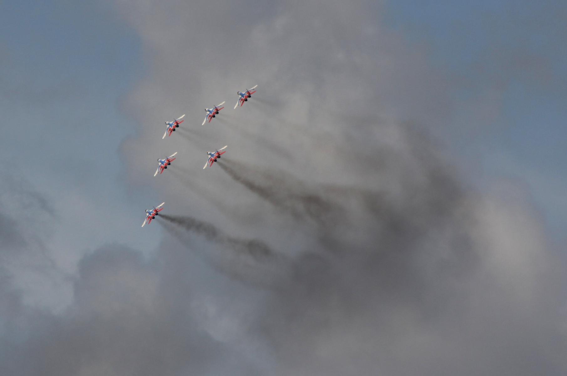 pufik Опубликовано: 29 августа 2015 Опубликовано: 29 августа 2015 Сидим четвёртом в ожидании чуда Ехать или за водкой идти )))? ...Чуда не было но и водки тоже. Я только что приехал оттуда. Поехал поздно, к рядам подошёл как раз когда заканчивал программу, как потом оказалось не последнюю, Т-50. Когда стали крутить 2х2=4 Сушки 3х потихоничку разгоняясь пошёл дождь... второй уже с приезда под который мне повезло (больному простудифилисами с ног до головы) попасть. Первый более серъёзно зацепил на территории "фильтрационного лагеря" перед посадкой на автобус на станции прибытия. Далее мнудные процедуры с переменой мест для выбора более удобной точки для съёмки в перемешку с этой самой съёмкой в свою очередь в перемешку с тихим матом то на капли то на солнце прямо в лоб. Программу катали относительно сумбурно - согласно погоде. Так же сумбурно у моей мыльницы в самый не подходящий момент "вылетали" АКБ. Батарейки для моего Никона оказались более предпочтительны, теперь я это знаю наверняка наученный горьким опытом во второй раз. В итоге получилось не менее часа-полтора видеосъмки. Но из за сумбурности всего и вся что из этого окажется "съедобно" я не знаю. В любом случае когда облачность с дождём спустились до нижней отметки теже 4 сушки тупо наматывали круги выжигая излишек керосина... пилотажем это даже с натяжкой назвать не получится. Да и просто скучно такое смотреть, зато мы понюхали гари высококачественного керосина . Видео и фото выложу по готовности... а пока .