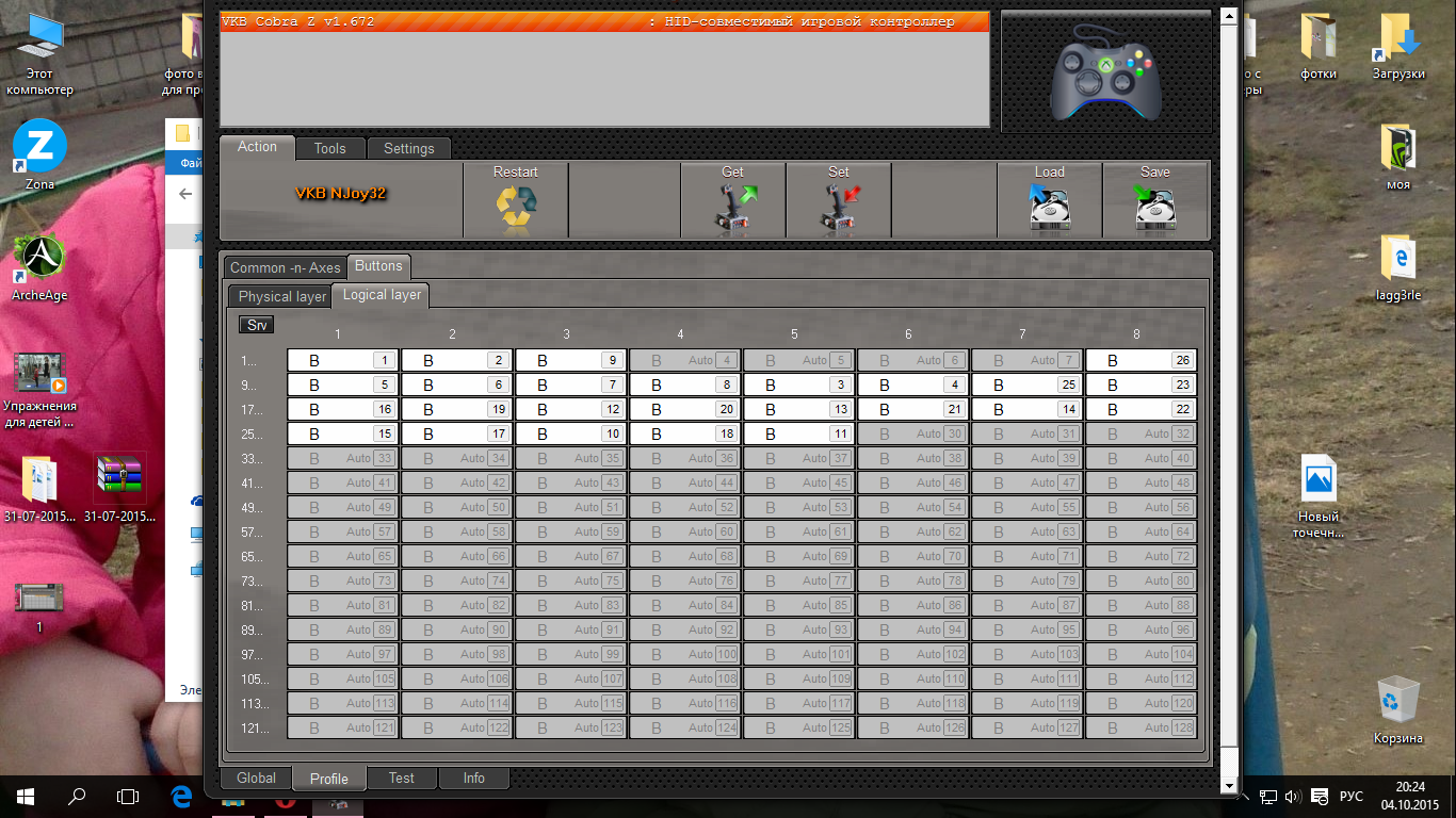 Vumpel18 Опубликовано: 5 октября 2015 Опубликовано: 5 октября 2015 3.5. Настройка контроллера 1. Подключите джойстик к свободному порту USB. 2. Запустите конфигуратор контроллера. 3. Раскройте вкладку Parameters. 4. Введите в поле #Reg значение, равное 4 — Black Mamba И самое важное: 5. Чтобы изменения вступили в силу, нажмите кнопку Set. А дальше, по руководству - ССЫЛКА Victor_US. В главной закладке поставьте 128 кнопок, потом Set. Кнопочки нужно самому забить и естественно проверить их работу. Потом опять нажмите кнопку Set. Есть путь для ленивых: Ищем готовый профиль: архив BM-FM_v1_58_6 - смотреть при распаковке, там есть профиль под ручку Кабана и Когуара. И вот что должно быть: конфигурация органов управления номера линий органов управления джойстика Fat Mamba c ручкой от Hotas Warthog показаны на рис. 3.8. по ссылке Victor_US. Обратите внимание, что линия 32 соответствует первому курку, 25 — второму. Для ручки Hotas Cougar кнопка нажатия хатки на приливе (31) отсутствует. Полный список соответствия органов управления номерам линий контроллера приведен в табл. 3.1. указанного быстрого старта от 11.02.2014 версия 2.2.