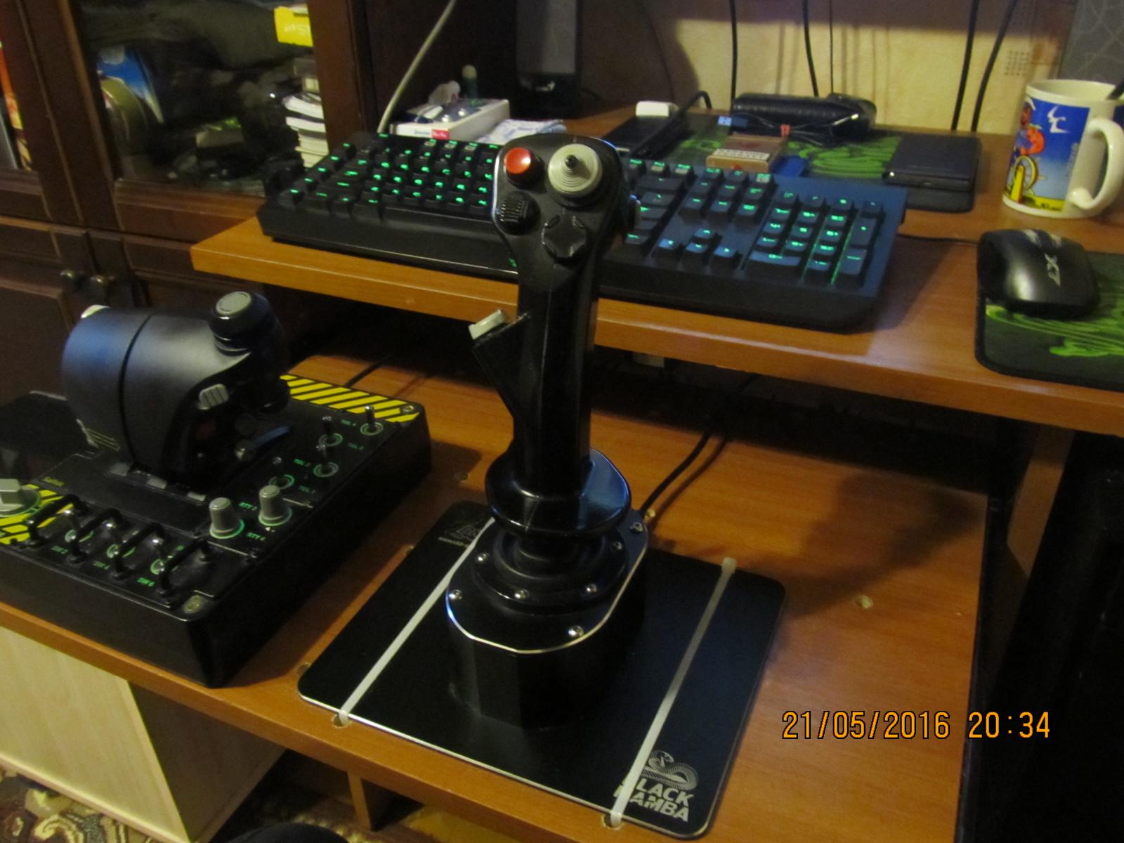 =AD=palich Опубликовано: 29 мая 2016 Опубликовано: 29 мая 2016 (изменено) Сразу делаю оговорку, что сравниваю с Warthog, к которому я привык. Во первых, при разборке, один провод, который подсоединяется к верхней части джойстика в торец верхней платы, очень короткий. Отсоединить, ещё куда ни шло, а вот подсоединить обратно, еле пинцетом подобраться можно. Поставил я кулачёк с "W", ручка всё равно висит немного вверх на стоковых, жёлтых пружинах. "W" c "10" визуально отличаются совсем чуть чуть... Поставил чёрные пружины, всё равно не хватает) после вартога то) Как две пружины сразу приладить пока не сообразил. Ну и сразу обнаружилось, что подставки под такое усилие не хватает, так и норовит на ребро встать, придётся утяжелять её. К сожалению, от вартога подставка не подходит. Вообщем джойстик разительно отличается от вартога по усилию на ручке. С одной стороны на вартоге это чрезмерное усилие раздражало, но с другой, нужно заново учиться летать. Да помню времена игры на Кабане за час рука уставала,а сейчас днями можно играть и ничего,правда не с ручкой Кабана а с ручкой Кота но они практически одинаковые ручка Кота чуть легче,основание джоя действительно отрывается от стола но я его закрепил пластиковыми хомутами(стол вот только попортил просверлил в нём дыры ) по поводу пружин с новой механикой у меня пришло 6 штук и я поставил самые жёсткие но с кулачком 10 и всё нормально сама фишка этого загруза в прогрессивном усилии чем больше отклоняешь тем больше прикладываешь усилие.Пружины у меня все серебристые чёрных нет и по жёсткости выбирал на ощуп.А на счёт софта пока решений нет,пробовали сделать объединение с рудом Кота и вроде как получилось но в серию это устройство так и не пошло. Изменено 29 мая 2016 пользователем =AD=palich 1