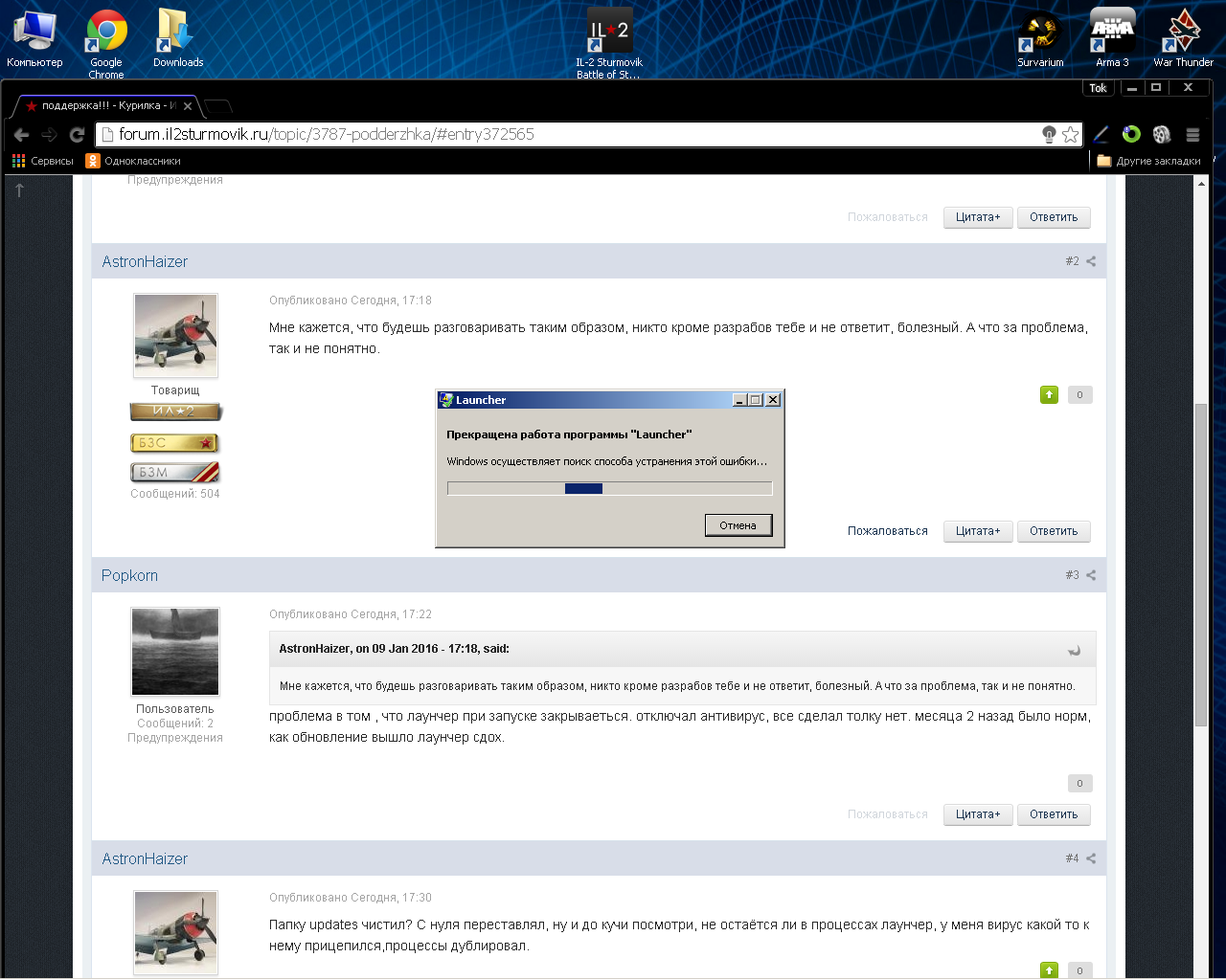 Popkorn Опубликовано: 9 января 2016 Автор Опубликовано: 9 января 2016 Мне кажется, что будешь разговаривать таким образом, никто кроме разрабов тебе и не ответит, болезный. А что за проблема, так и не понятно. проблема в том , что лаунчер при запуске закрываеться. отключал антивирус, все сделал толку нет. месяца 2 назад было норм, как обновление вышло лаунчер сдох.