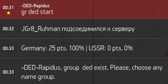 1CGS -DED-Rapidus Опубликовано: 18 февраля 2016 Автор 1CGS Опубликовано: 18 февраля 2016 (изменено) Скоро на сервере...точнее уже на сервере можно не group, а сквад наверное.... ну и нужен англицкий перевод фраз группа # создана группа # уже существует, выберите другое имя для группы(сквада?) вы уже создали группу #, распустите созданную. группа # изменена, участники: ..... группа # распущена по домам Изменено 18 февраля 2016 пользователем -DED-Rapidus 4