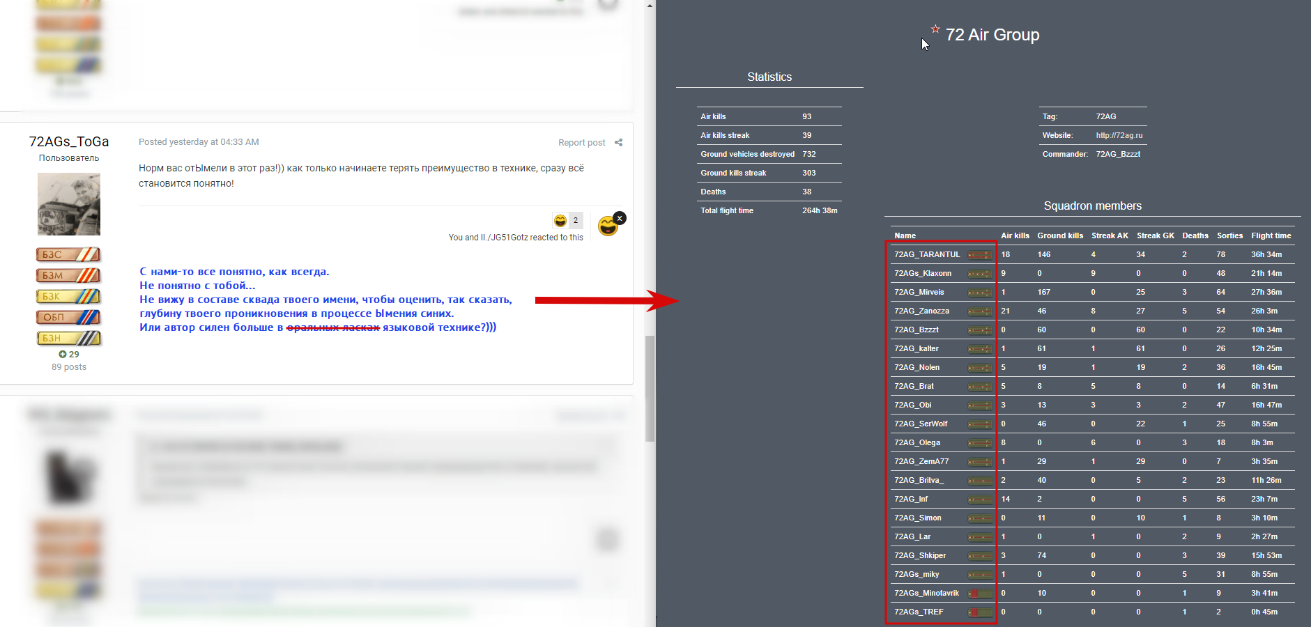 72AG_SerWolf Опубликовано: 19 мая 2021 Опубликовано: 19 мая 2021 20 минут назад, Norz сказал: Не так. Берем старую редакцию: 1. могу полететь на любом самолете,т.к. набрать 3 очка можно транспортом (занимает 30 минут) 2. могу полететь с горизонта бомбить (правда, с новыми старыми бомбами сомнительное удовольствие, но все же) 3. могу на самолете, который заведомо быстрее (190а3), пикировать на филд с бомбой (даже один). как видим, уже 3 пункта, которых нет в новой редакции. Я уверен, что есть много игроков, которым текущая редакция нравится больше,чем старая. Хотелось бы понять, я в группе большинства или меньшинства. Если второе, то смысла возмущаться особо нету, если в первой, то есть. Вообще, кто то из красных всерьез считает, что ф2 с бронеплитой это норм? Мне тогда с вами не по пути (по крайней мере на картах >=2). Я со всем этим согласен. Про истребители, единственно, в силу специализации, верю на слово своим истребителям, а они с синими полностью согласны (по поводу первых двух карт) Про бобров вообще больная тема, на них и так мало кто летает, а в текущих условиях на ТАВе это количество стремится к нулю А заставлять штурмов и бобров крабить на незнакомой им технике - это вообще печаль. Но таковы реалии, считайте что вот так война повернулась, наши деды не выбирали на чем им летать . 33 минуты назад, SV7_WoosterMsk сказал: Разговор слепого с глухим. У краснюков все отлично, поэтому любые доводы услышаны не будут. Пока мы жрём кактус, ничего другого нам предложено и не будет. Кто слепой, а кто глухой?