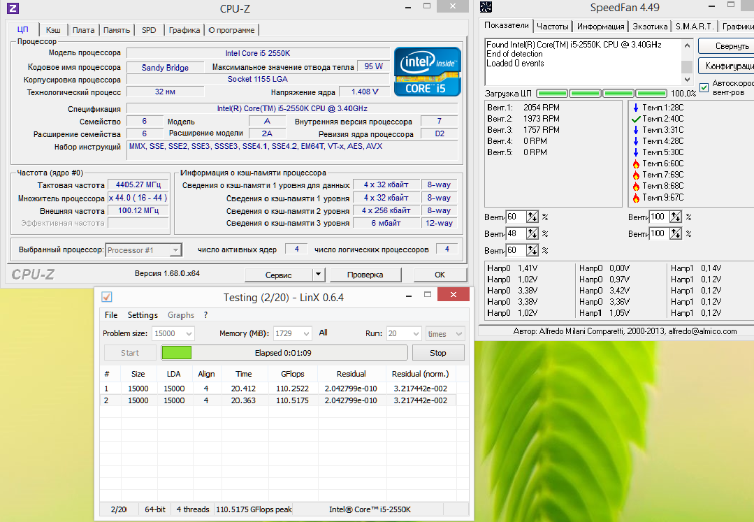 Vachik Опубликовано: 30 сентября 2014 Опубликовано: 30 сентября 2014 Финн, тебе повезло. У меня целая периферия. Пишу . Ты мониторишь Спидфаном? Ну вы, батенька, даете . Возьми нормальный монитор http://openhardwaremonitor.org/ Денег не просит. Покажет всё, что нужно. Графики запишет. Скачай S&M. При запуске ругнется. Но это фигня. Там какая-то длл для его собственного монитора под семеркой не работает. Но и фиг с ней, он не надобен. Убери галки с ненужных тестов, а то и винты проверишь и БП . Память там тоже можно прогнать на ошибки, если есть надобность. Короче, нагрузка 95-98% на ядра и вперед. Рупь за сто, у тебя реальных приложений способных так нагрузить камень нет, так что с запасом. Запусти и лыбся на циферки. Напряжение Vcore у тебя на скрине запредельное. Должно хватать 1.35--1.4 В. Я так думаю.