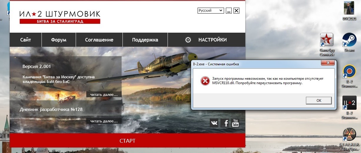 =SAE=true_Dentist_32 Опубликовано: 18 мая 2016 Опубликовано: 18 мая 2016 При ошибке обновления должно быть достаточно удалить файл IL-2\updates\16-05-18_install-actions и перезапустить лончер. Этот скрипт запускает установку Visual C++ и .Net, требующихся для игры, так что если сама игра при запуске стала выдавать ошибку, можно установить их вручную (они находятся в каталоге data\redist). спасибо за обновлениею после удаления\updates\16-05-18_install-actions файла не чего не докачалось?ето так и нужно?