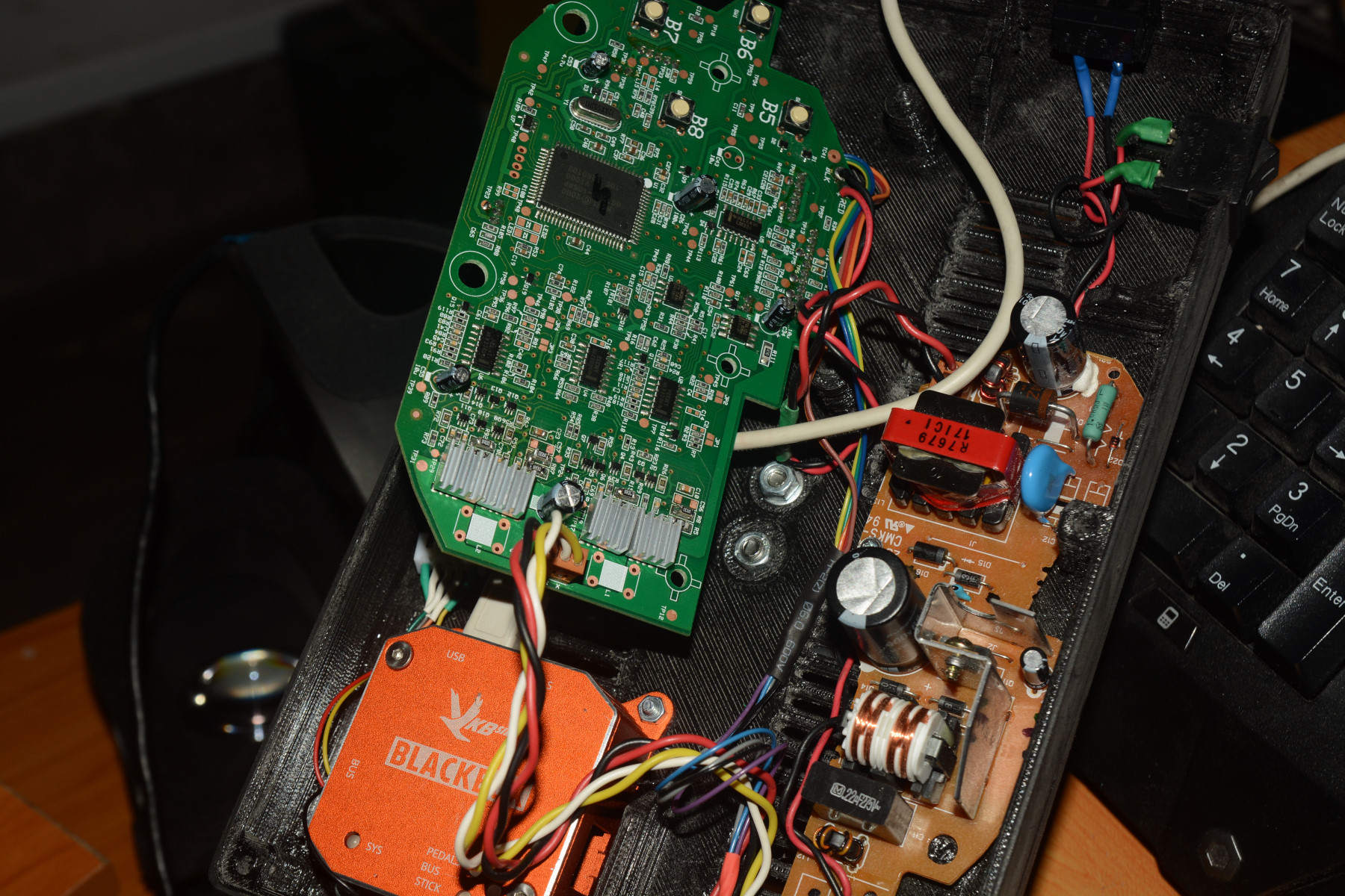 Magenta Опубликовано: 5 января 2019 Опубликовано: 5 января 2019 (изменено) Начал тут наконец переделывать свой MS FFB2 на удлинённую рукоятку, плюс замена ручки на VKB MCG , добавил резисторов для увеличения обратки, но засвистели моторы !!! Кто то сталкивался ? как побороть ? Может кондеры добавить параллельно обмотке двигателя ? Свист возникает в при отклонении рычага от центра, свист достаточно тонкий, по ощущениям где то в районе 7-10 кгц ... Да, ещё греются достаточно прилично драйвера/мосфеты , думаю может радиаторы на них приклеить ? Изменено 5 января 2019 пользователем Magenta