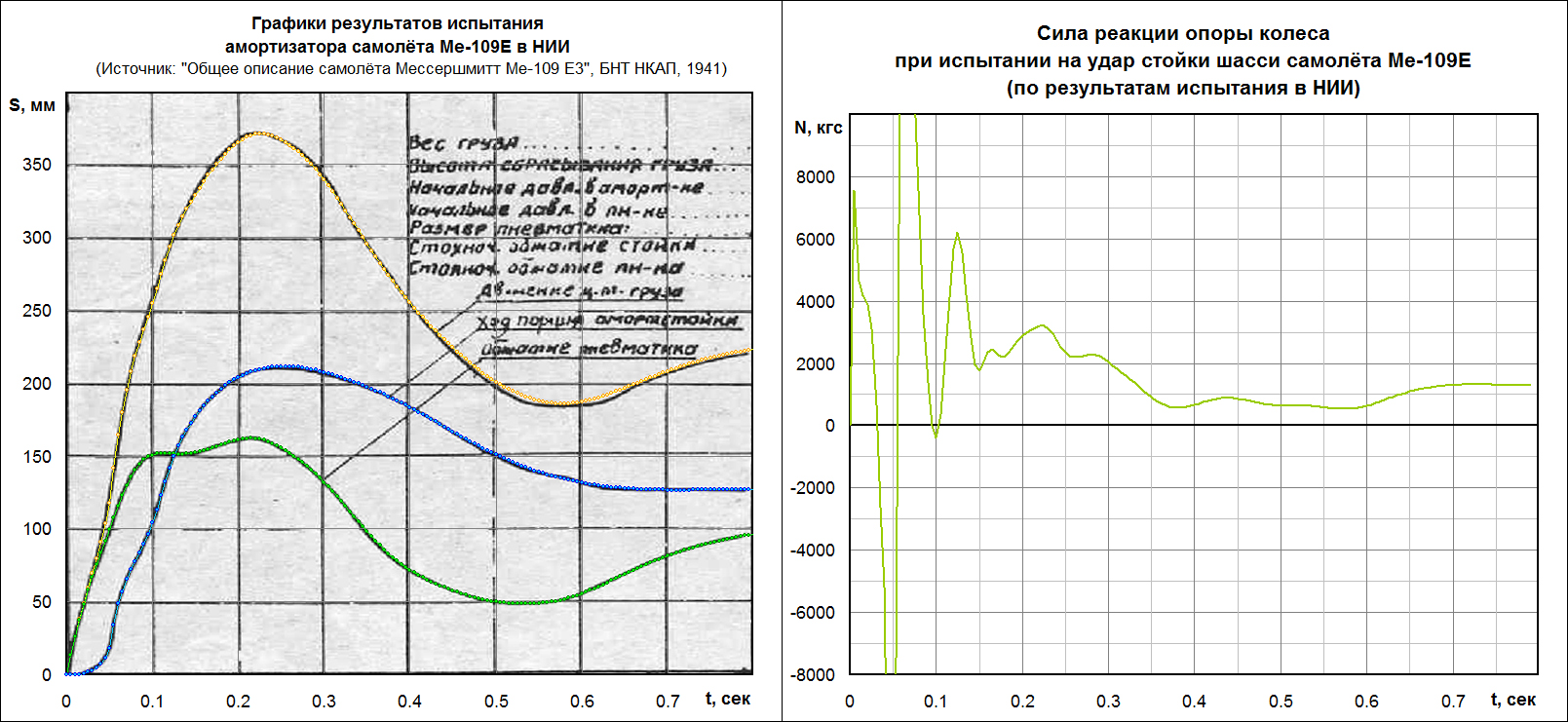 AnPetrovich Опубликовано: 31 августа 2016 Опубликовано: 31 августа 2016 А трение покоя штока рассматривается как возможный фактор задержки? Есесенно! Но вот даже если не вдаваться в детали, представь: статическое (условно говоря стояночное) обжатие штока амортизатора под нагрузкой порядка 1100-1200кгс около 60мм, при этом пневматик обжат примерно на 40-50мм. На графике НИИ шток амортизатора начинает движение только тогда, когда пневматик динамически (а не статически!) обжимается на эти самые 40-50мм, то есть даёт нагрузку на шток более тонны! Это чё за на хрен силы трения покоя такие?!! Как такой амортизатор вообще способен работать, если просто для того, чтобы сдвинуть шток из состояния покоя, к нему дополнительно нужно приложить усилие более тонны, чтобы преодолеть силы трения штока? Проще такой шток заклинить и законтрить на саморезах, чтобы не изнашивался в работе. Интересно, какими датчиками в те времена данные снимались, и как эти датчики устанавливались. Методика испытания шасси (в том числе на удар) подробно расписана в РДК-43. С пояснениями, схемами и т.д. График НИИ, правда, из книжки 41-го года, и вероятно методика испытаний претерпела какие-то изменения.