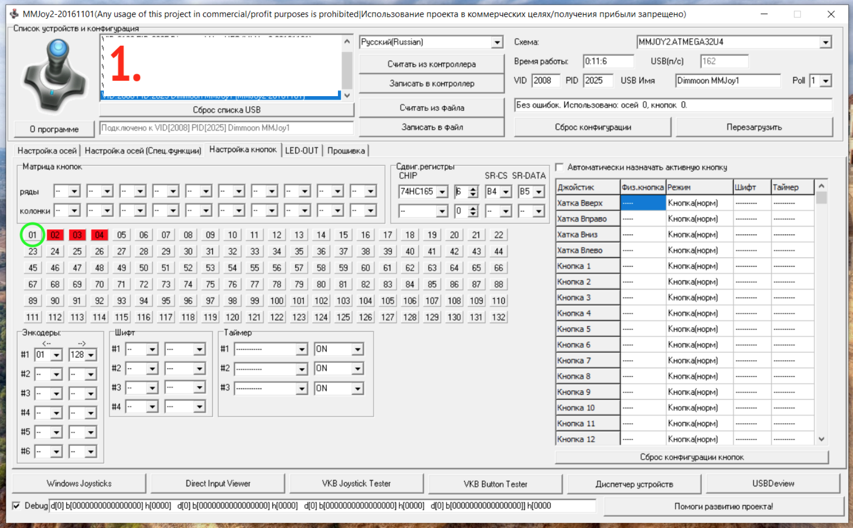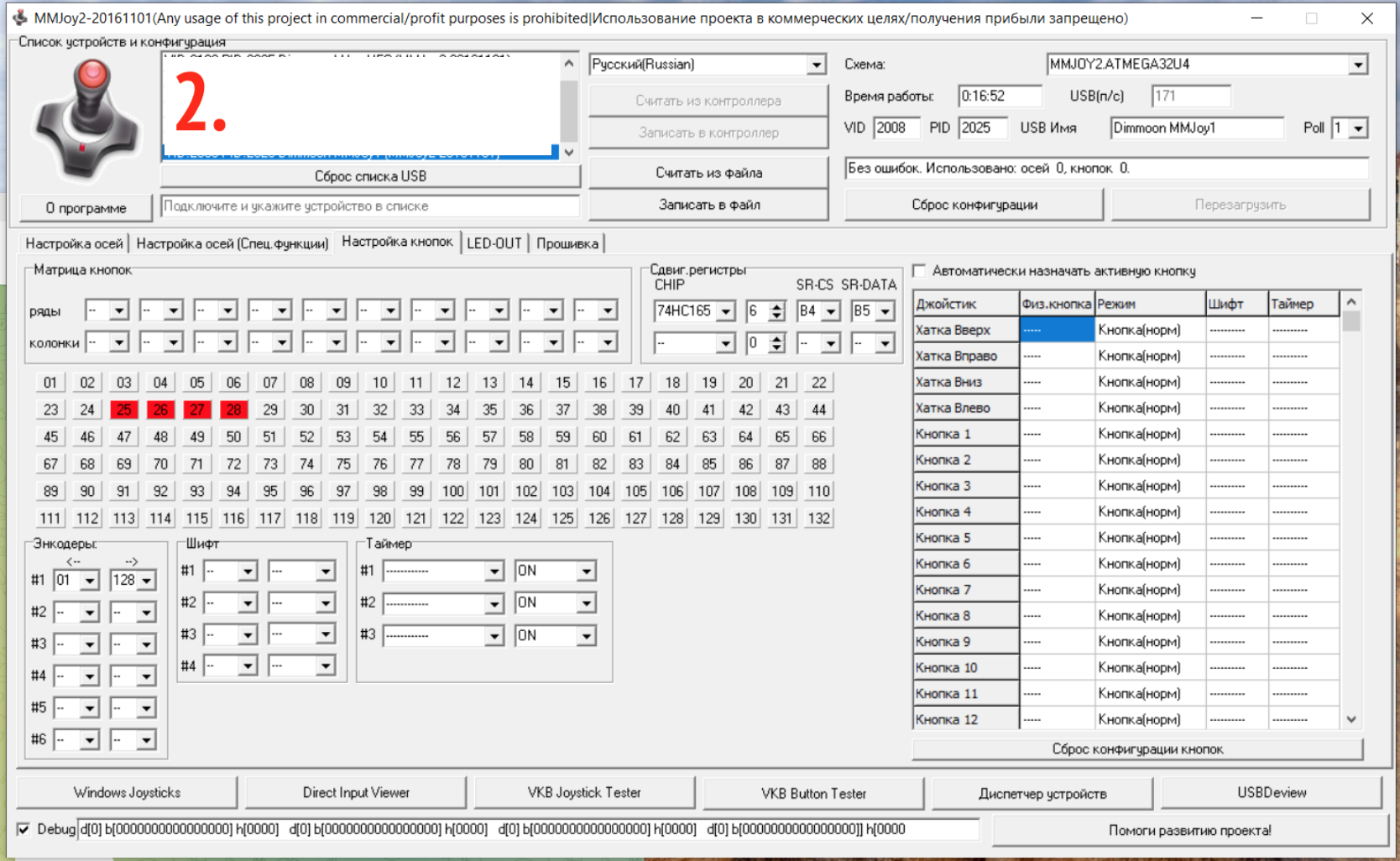 sergeype Опубликовано: 30 сентября Опубликовано: 30 сентября 1 час назад, Andrey_Yulin сказал: Да я хочу при стрельбе курком чтобы моторчик вибрировал у меня все кнопки на плате джойстка общим проводом соединены в одну колонку а ряды все отдельно. И да все кнопки без диода подключены так как все и так работает. А, так они вообще все подключены матрицей... Хотя да, это же MMJOY; тут (в отличие от нежно любимого FreeJoy) кнопку напрямую не подключить. Интересно (никогда не мерил)- что происходит с уровнем сигнала в конкретном ряду до и после замыкания соответствующей кнопки. Вечером, пожалуй, достану оставшуюся со старых времен ProMicro и попробую. 2
