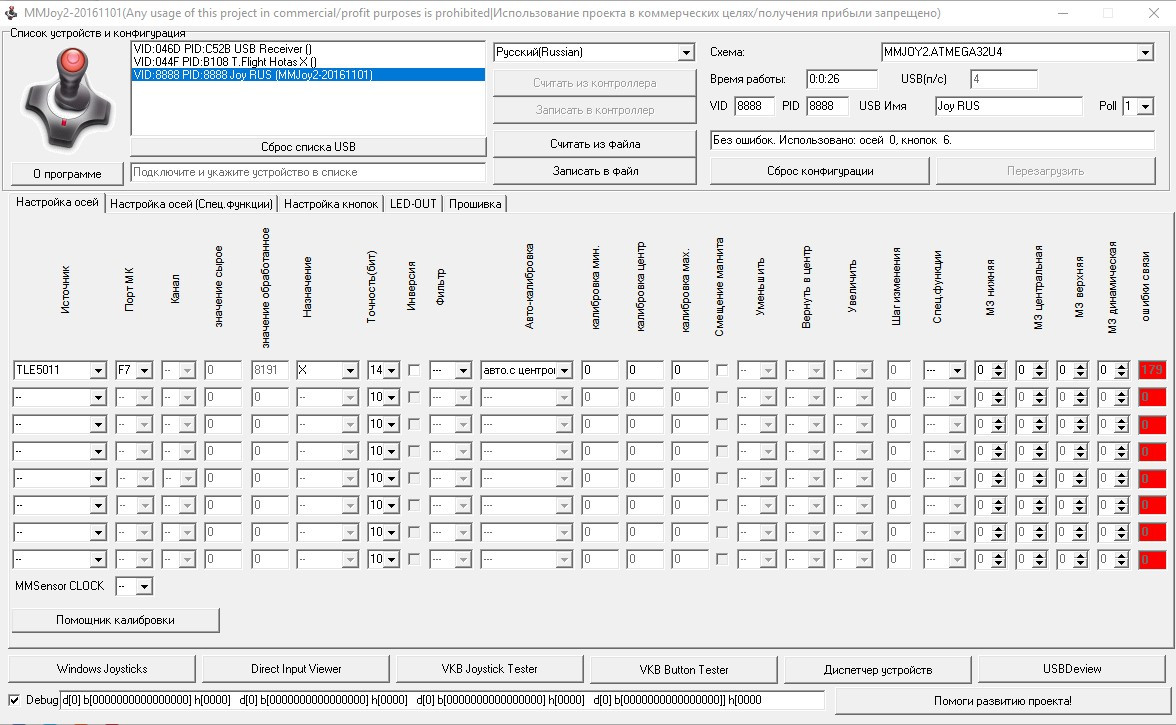 2serg2 Опубликовано: 10 августа 2019 Опубликовано: 10 августа 2019 (изменено) 7 часов назад, scorpion_ks05 сказал: Вот добрался и я до самого сложного. Прошу помощи. Датчик не реагирует на магнит. Какие необходимы действия? С чего начинать поиски? Вместо 120 Ом нужно установить 50 Ом. Вместо резистора, который идёт на 3 ножку нужно установить 10кОм (у тебя 1 кОм). Резистор подтяжки, который идёт на 4 ножку лучше выпаять и установить один общий для всех TLE5010 между питанием и 15 ножкой Arduino (MISO). У меня это 1,8 кОм. Вот моя схема: Скрытый текст В программе в "Настройке осей" "Авто-калибровка" установи "Сохранённая с центром", как в этом видео: Скрытый текст Изменено 10 августа 2019 пользователем 2serg2