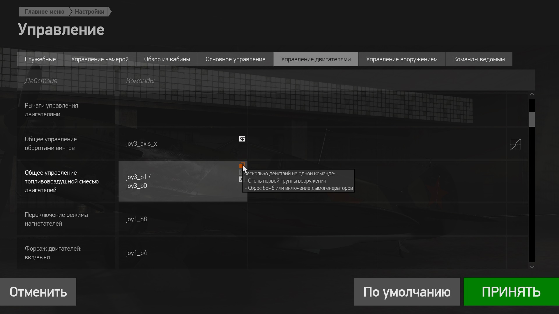Jet_F_76 Опубликовано: 15 ноября 2016 Опубликовано: 15 ноября 2016 (изменено) Нажмите кнопку "По умолчанию" - настройки сбросятся. Далее настройте все заново. После этого проблем больше быть не должно. То есть в установленной начисто игре настройки не по умолчанию? Ну хорошо, нажал "По умолчанию". То же самое - кнопки РУСа по ИД совпадают с кнопками и осями квадранта. Пользуясь советом № 24 из раздела "Поддержка" вручную переназначил Joy3 на Joy0 в части касающейся команд, назначенных на кнопки РУСа. Проверил - кнопки на РУС в игре как пахали так и пашут, квадрант молчит - в меню игры назначается. Перемапил команды на квадранте - монописуально. Квадрант игра видит, кнопки мапит, но понимать команды от него во время игры не хочет. До 2.005 все работало нормально, кроме ФФ. Еще раз повторюсь - все джои подключаются к ОДНИМ И ТЕМ ЖЕ портам USB хаба с дополнительным питанием и к ВСЕГДА ОДНОМУ И ТОМУ ЖЕ!!! порту USB 3.0 на системнике. Когда все жаловались на смену ИД - у меня ничего не менялось и все отлично работало. ПыСы: при попытке перемапить кнопки РУСа все то же самое - кнопки на РУСе снова относятся к Joy3, а оси при этом Joy0. Это как вообще? Изменено 15 ноября 2016 пользователем SDPG_Rokot