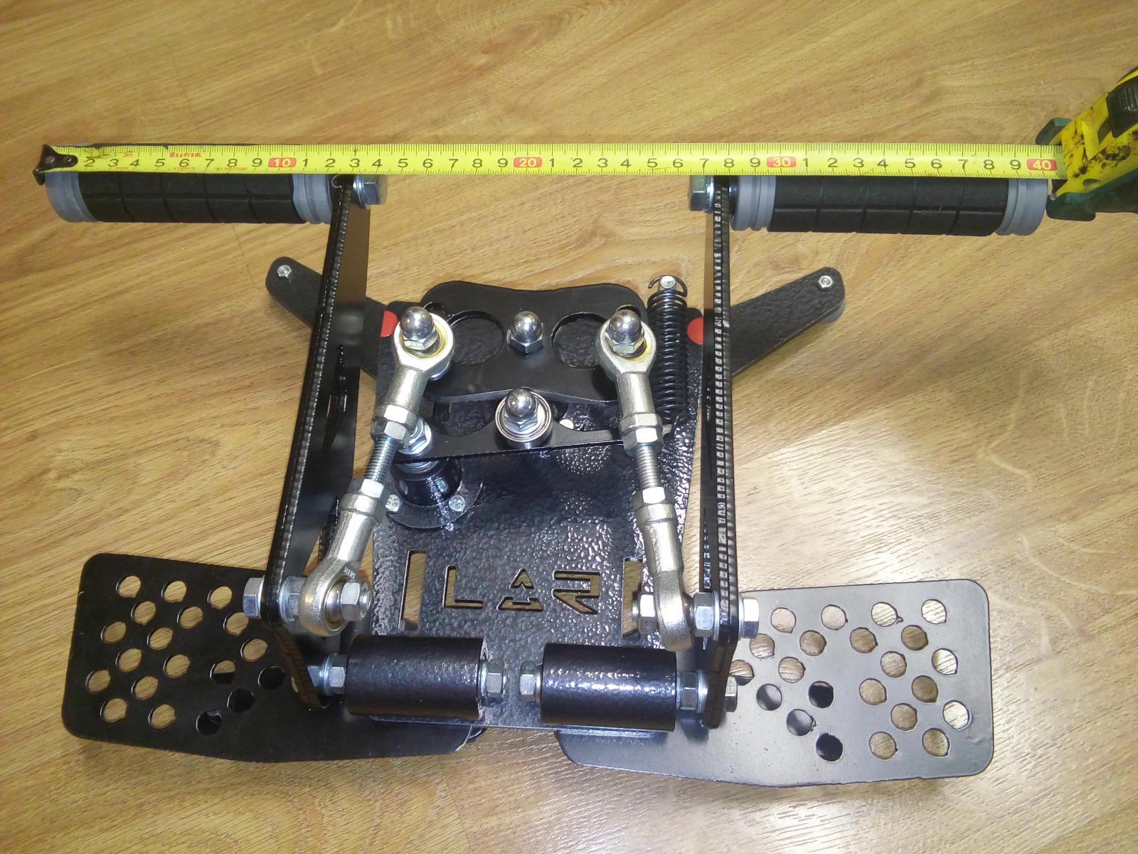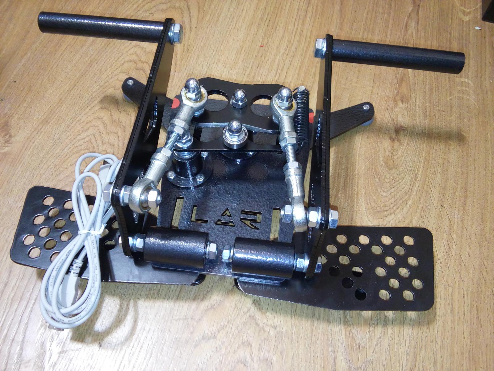 72AG_Lar Опубликовано: 21 апреля 2017 Автор Опубликовано: 21 апреля 2017 посадка больше подходит для офисных стульев и разных "табуреток", привычней управлять нажимая ступней, вроде как на физиологическом уровне получается точнее работает по большей части только икроножная мышца а не вся нога в купе с тазом, короче меньше приходится напрягаться. меньше размер, механика тоже вроде как проще, при желании несколько вариантов установки, под наклоном если низко по автомобильному сидишь, или ваще перевернуть можно. не получится использовать совместно с подстульным или напольным джойстиком, (более узкая постановка ступней) с напольным точно. проблема с реализацией "тормозов", только одна ось. есть свои плюсы и минусы, подобную конструкцию чаще используют в вертолетах.