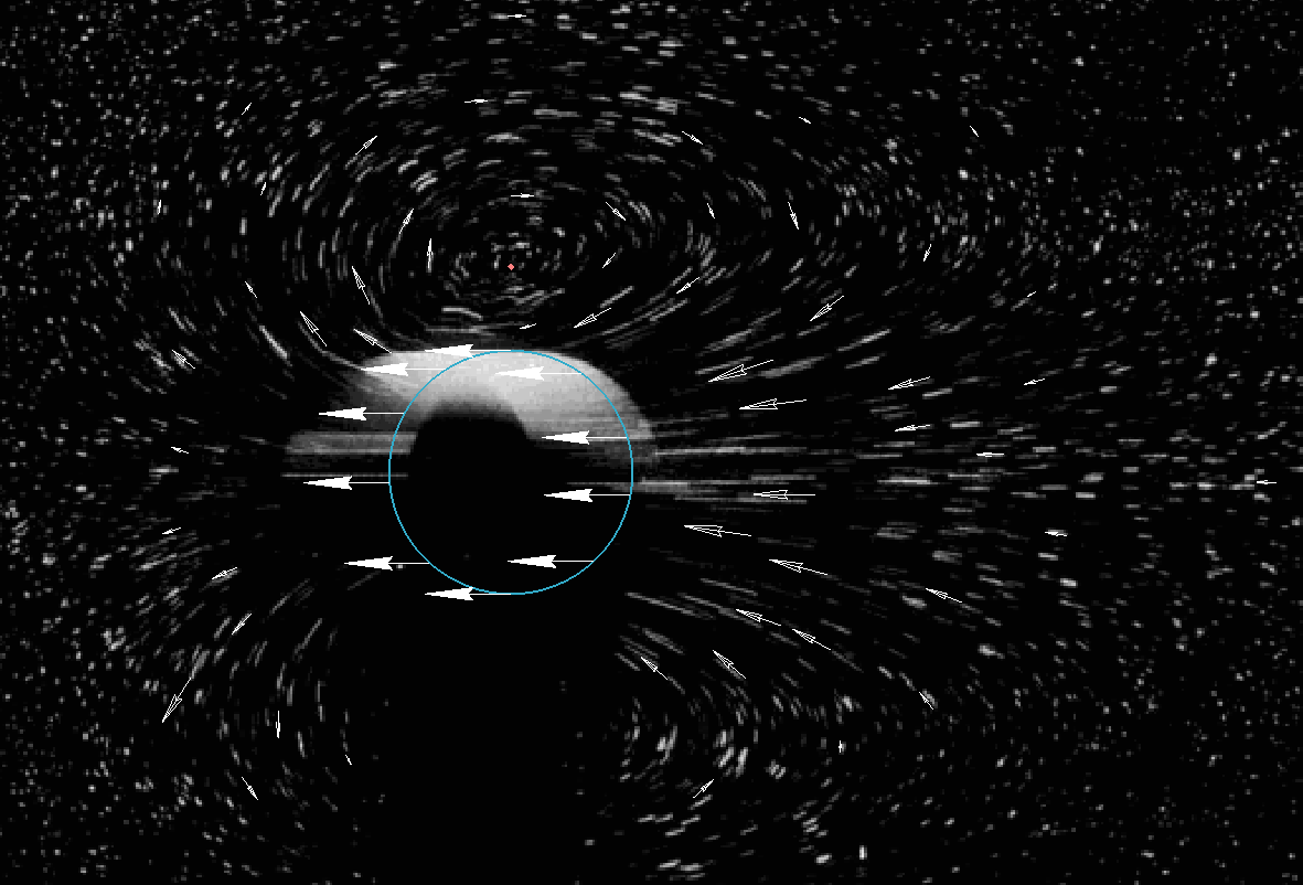 [I.B.]ViRUS Опубликовано: 6 марта 2019 Опубликовано: 6 марта 2019 (изменено) тем не менее, я закончил строить стрелки векторов. Итак, первоначальная картинка построил в компасе сеть векторов, постарался выдержать и направление стрелок, и смасштабировал каждую по размерам длин соседних линий, образованных движущимися частицами: без фонового рисунка всё выглядит так: Далее, шар движется с некоторой скоростью. Добавим к каждому вектору вектор скорости, равный по длине скорости вектора шара, но обратный по направлению. Вектора на поверхности шара сократятся в ноль, картина с остальными векторами будет выглядеть так: Далее - геометрическая сумма всех векторов (да, это всё это заняло уйму времени): А теперь слой с одними лишь полученными векторами: А теперь фото линий тока: Что называется, граждане, делайте очевидные выводы. Изменено 6 марта 2019 пользователем [I.B.]ViRUS