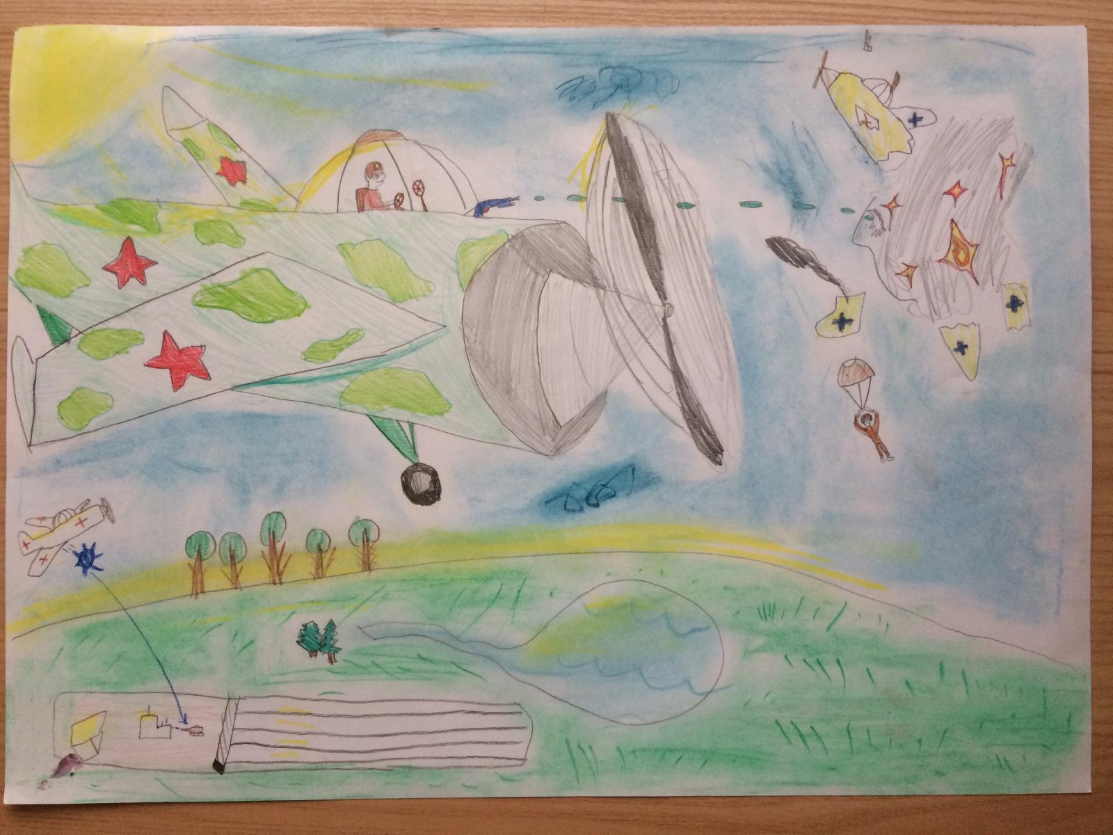 Udmurt Опубликовано: 30 мая 2017 Опубликовано: 30 мая 2017 подозреваю, что это аэродромные службы отстреливаются от неприятеля синей ракетницей ... вечером уточню Нет-нет, скорее всего, это показана именно бомбардировка. Там видно, как с самолёта отделяется синяя бомба, а далее летит по баллистической траектории в цель. Всё правильно изображено, кстати! Хочу сказать, что после повторного просмотра мне ещё больше понравился рисунок. Умница.
