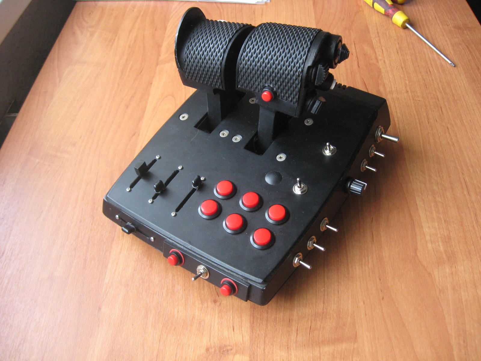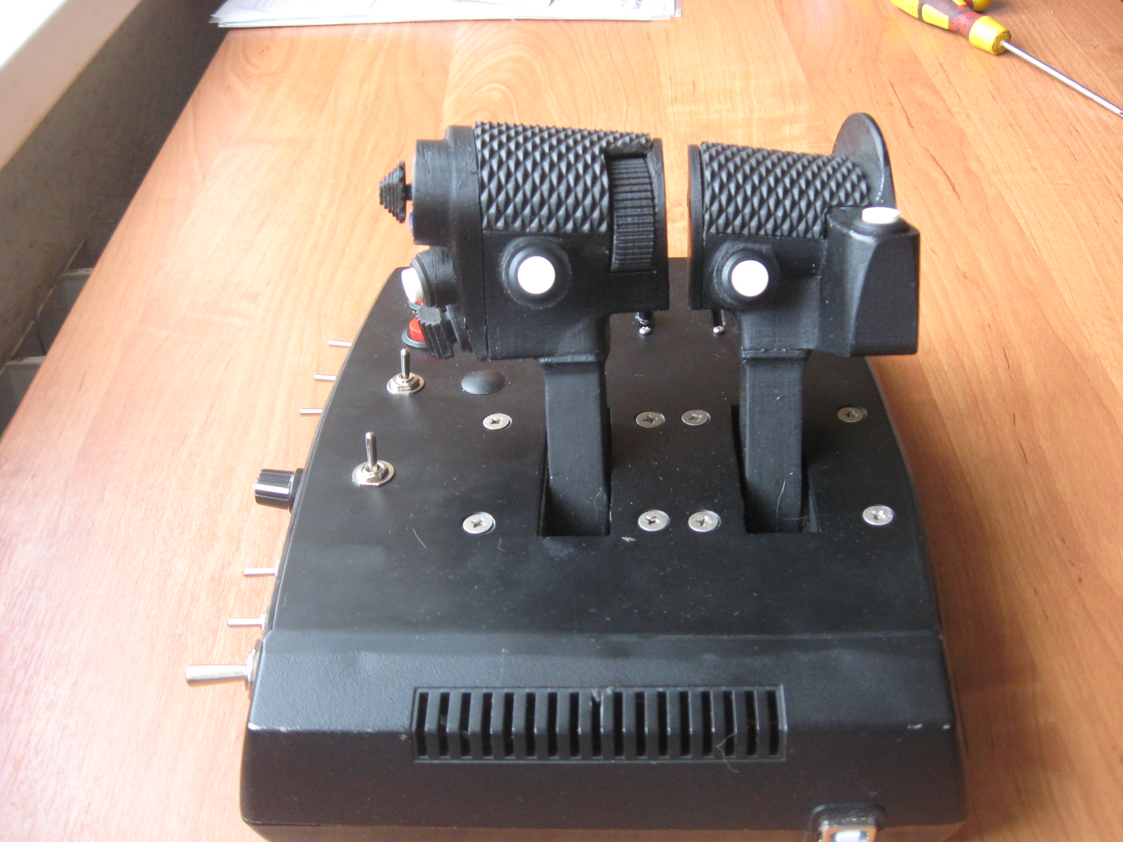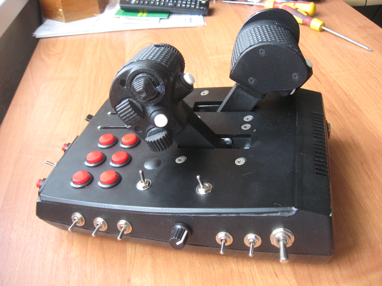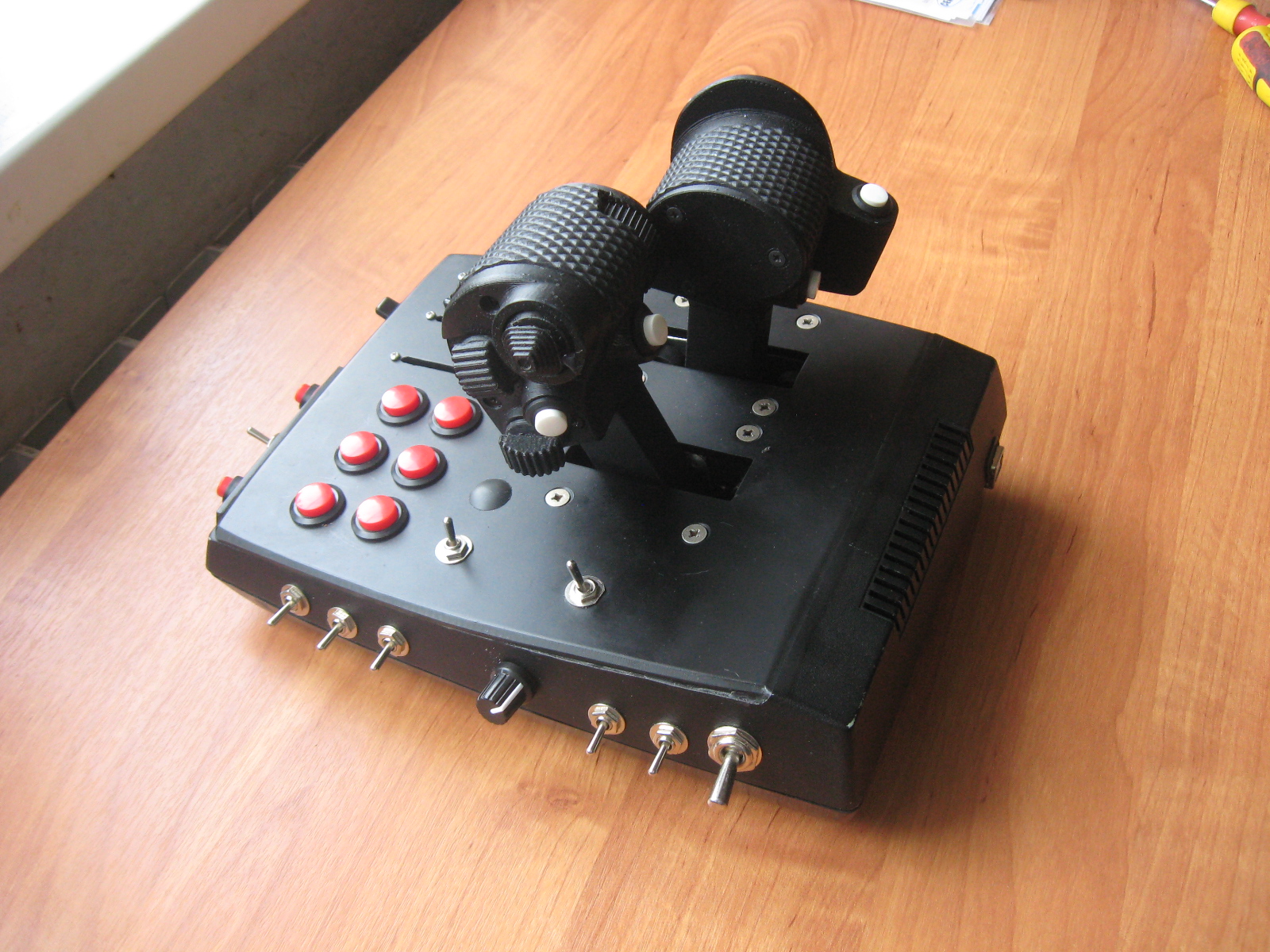 Gelmec Опубликовано: 15 июня 2017 Опубликовано: 15 июня 2017 Продам раздельный РУД на 2 двигателя, настольный, новый, USB, Контроллер ММJoy2 (https://sites.google.com/site/mmjoyproject/o-proekte): - 8 осей, из них: - 2 оси (собственно РРУДы) - бесконтактные цифровые датчики, 14 бит, фактически ок. 5500 остчетов/ход, механика железная на подшипниках, угол отклонения около 70 гр. (ход по верхней кромке 12 см) регулировка усилия перемещения; - 6 осей - контактные аналоговые датчики (потенциометры), до 14 бит, из них 4 линейных и 2 вращения. - 32 физические кнопки, из них: - хатка 8 поз. - 4 кнопки; - 2 хатки 2 поз. - 4 кнопки; - 10 обычных кнопок (4 белые на РРУДах и 6 красных на корпусе сверху; белые доработаны под отчетливый клик) - 3 кнопки с фиксацией (красные назад по полету - 1 на правом РРУДе и 2 на корпусе) - 7 тумблеров 2 поз. ON-OFF - по 1 кнопке каждый; - 2 тумблера 3 поз. ON-OFF-ON - по 2 кнопки каждый. Кнопки программируются под поставленные задачи. Например, можно увеличить количество виртуальных кнопок с помощью маппера. Подключение к ПК - кабель USB/AM - USB/BM. Цена 10000 руб., пересылка за счет заказчика. Территориально - РФ, Хабаровск. Сергей Елисеев, s_eliseev@list.ru 7