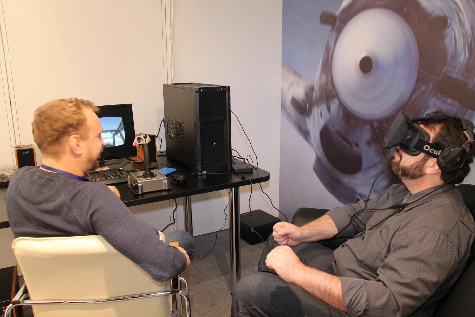 DogMeat Опубликовано: 4 октября 2013 Опубликовано: 4 октября 2013 Буду публиковать сюда некоторые материалы с места событий. 1) Корхард летает с Окулусом и пытается схватиться за виртуальные ручки 2) Корреспонденты с Канобу потихоньку влюбляются в небо IMG_0724_Corhard.JPG IMG_0737.JPG Спасибо за интересные фото. Смотрю, джой стоит - Кобра 5 модифицированная. Приятно видеть, что этот весьма неплохой джой пользуется популярностью у разработчиков.