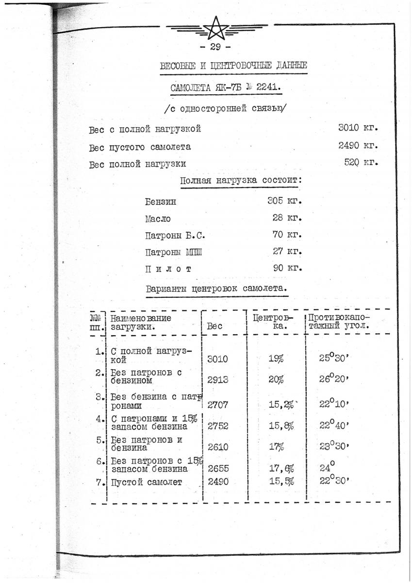 AnPetrovich Опубликовано: 25 октября 2017 Опубликовано: 25 октября 2017 Всем привет! По следам очередного детективного расследования в поисках исторической истины захотелось поделиться с комьюнити "типичной проблематикой" и предложить решить ребус... Мы (разработчики) довольно часто сетуем на тот факт, что в открытом доступе очень много противоречивой информации о технических характеристиках самолётов, которые мы виртуально воссоздаём. Более того, регулярно и очень много приходится сталкиваться с несостыковками информации в технических отчётах (что уж говорить о мемуарах). Часто противоречивая информация содержится буквально на соседних страницах одного и того же документа - я за свою инженерную практику встречал такое много раз, даже в современной конструкторской документации по современным самолётам. А иногда бывает и так, как в нижеследующем примере - несостыковки присутствуют прямо на одном и том же листе технического отчёта. Вашему вниманию представлена страница из "Отчёта по контрольным испытаниям серийных самолётов Як-7Б № 2241 с форсированным мотором М-105ПФ и №2203 с мотором М-105ПА производства завода №153", НКО СССР НИИ ВВС, утверждённого 23.07.1942г. Всем заинтересованным предлагается попробовать свои силы: 1) В поиске очевидных ошибок. 2) В расчёте горизонтальных плеч (по оси ОХ ССК) в центровочной схеме для следующих компонентов: а) лётчик с парашютом + масло б) БК в) 100% топлива г) 15% топлива За начало координат для удобства предлагаю принять переднюю точку САХ крыла. Длина САХ: 1930 мм, установочный угол крыла 0°. Найденные плечи должны удовлетворять центровкам во всех представленных вариантах загрузки. Про противокапотажный угол и вертикальные координаты ц.м. я даже не заикаюсь, там ещё веселее... Данная задачка является очень хорошим и показательным примером того, с какими проблемами сталкиваются разработчики тру-симуляторов практически каждый день... 9