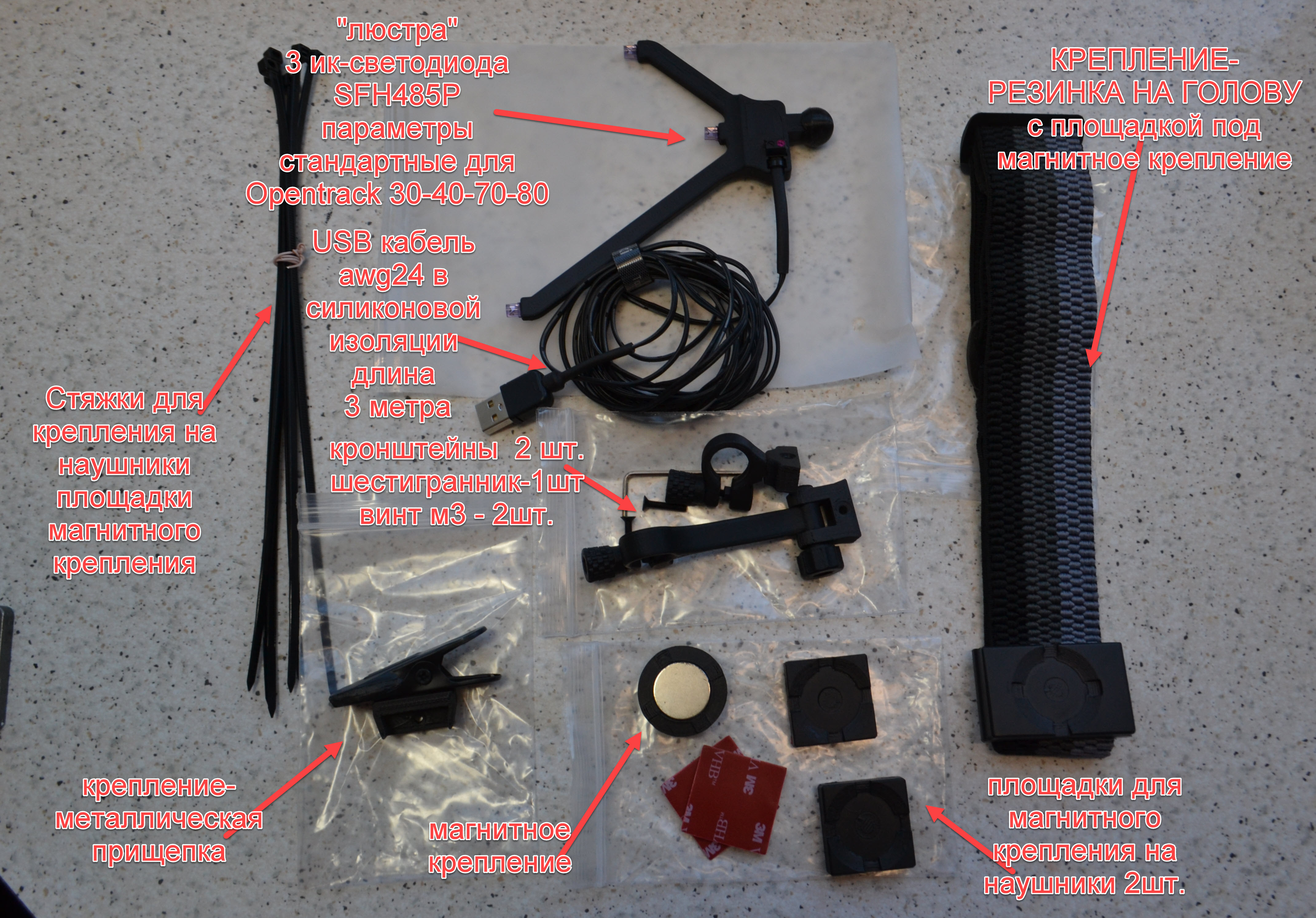 Deltavod Опубликовано: 13 января 2022 Автор Опубликовано: 13 января 2022 Имеется в наличии комплект Opentrack . клипса проводная с тремя типами креплений (магнитное,металлическая прищепка и пластиковая клипса-защелка )кронштейн без регулировки по высоте и с регулировкой а-ля трекировская клипса . длина провода 3 метра .размеры между светодиодами стандартные 30-40-70-80 .Камера PS3EYE с удаленным напылением .Фокусировка объектива не сбита. Соответственно ,можно задействовать обзор 56 или 75 градусов.Крепление на монитор,насадка для удержания пленки-светофильтра .материал АБС пластик ,окрашенный акриловой эмалью. цена 3 т.р. +доставка СДЭК ,Boxberry, Почта России.