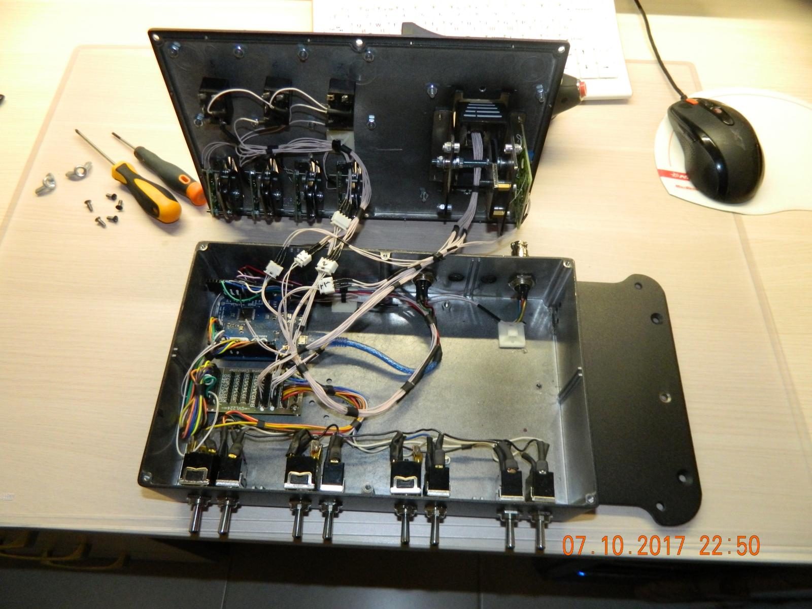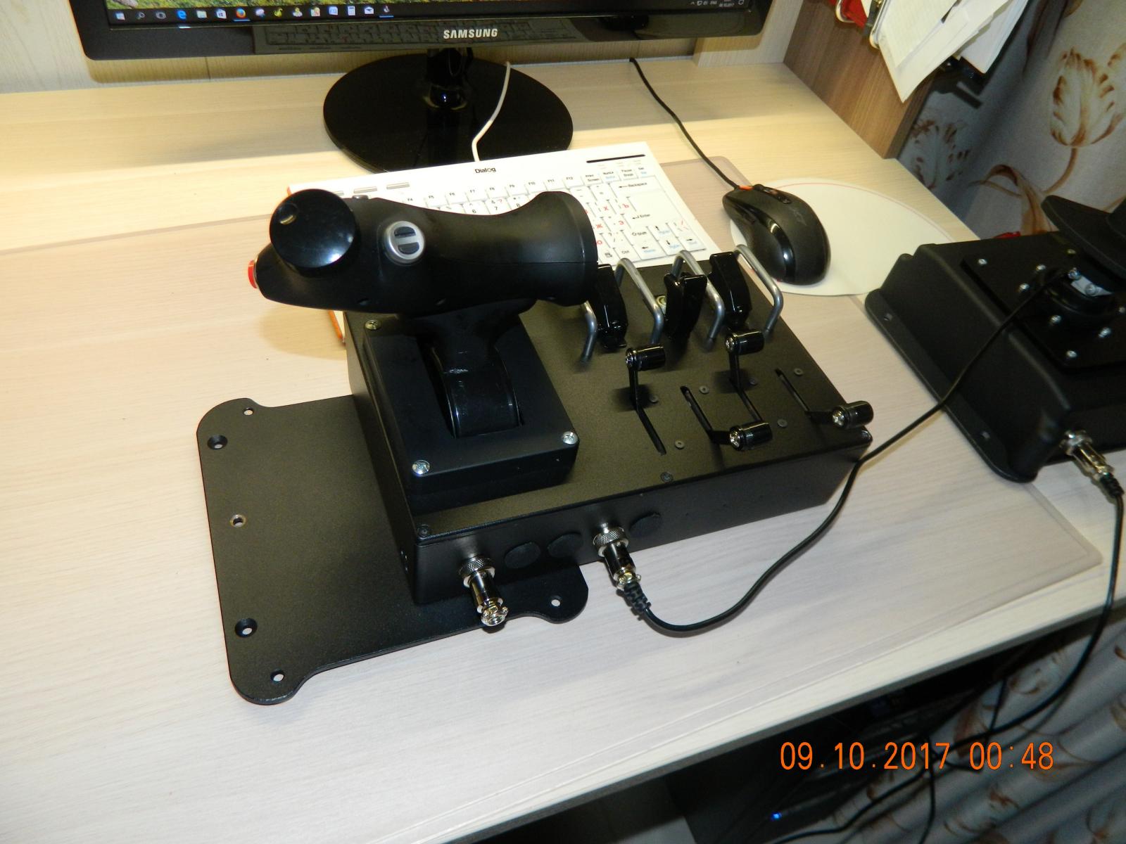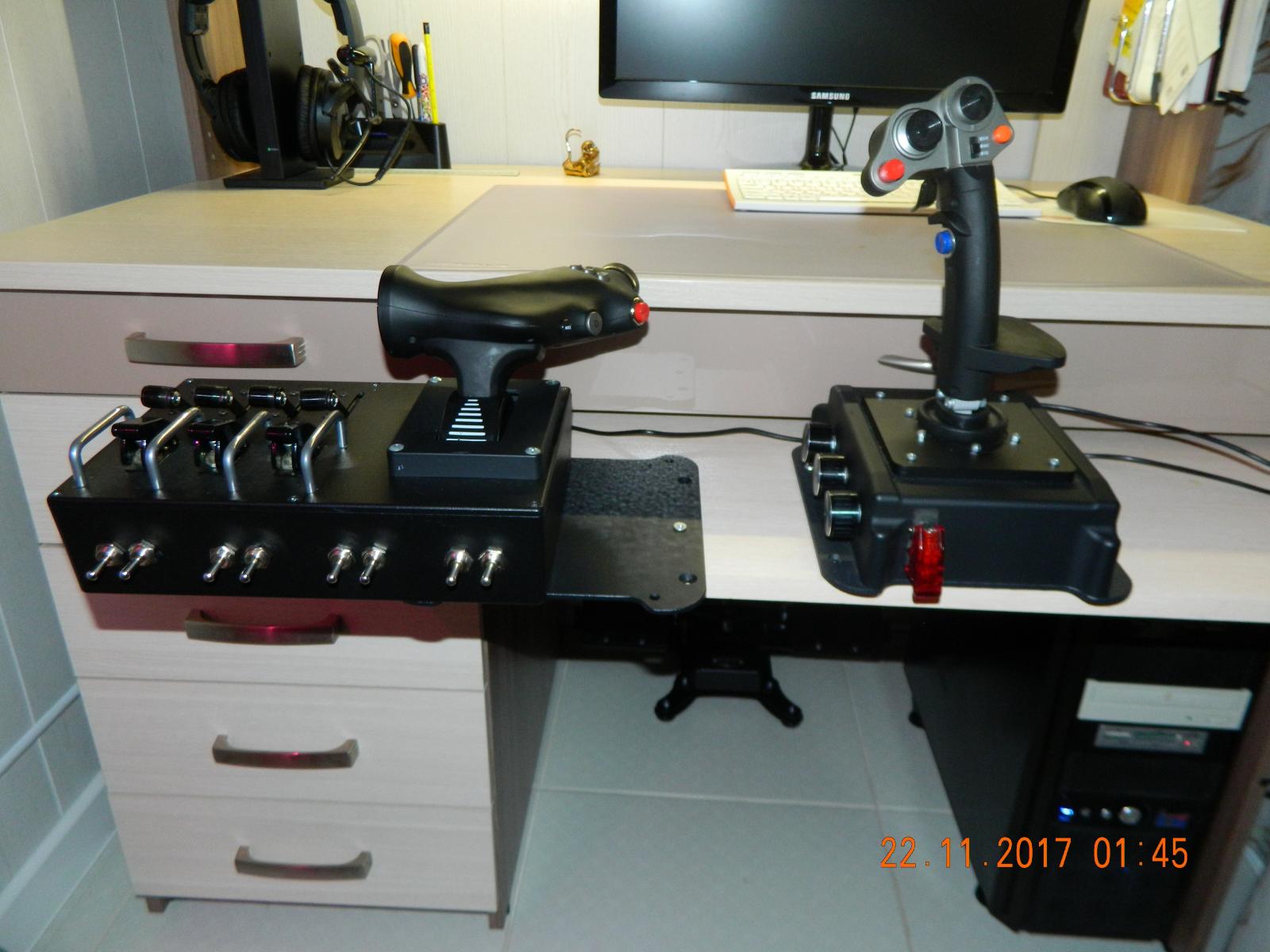Sdelan_v_USSR Опубликовано: 21 ноября 2017 Опубликовано: 21 ноября 2017 Контроллер NJoy32 от ВКБ Версия 1.27 и 3 цифровых датчика MaRS v 4.1 – 2000 руб. РУС 7000 руб. Джойстик Cobra M5, механика от Романа. Контролер от kreml C5 mini версии 1.01. Цифровые датчики RAMS от komaroff. Дополнительные оси 3 шт. на резисторах – 2 подключены от контролера 1 от отключенного твиста. РУД 5000 руб. Корпус из алюминия, крашенный порошковой краской в автосервисе. Маленькая механика 4 шт. и большая специальная под ручку РУД «Gametrix» от DVik. На маленькой механике датчики МаГРез от Defender Cobra M5 версия 1.01 оттуда же и магниты, на большую механику не хватило, поставил датчик для основной оси от Виталия (GVL) для педалей ( у него же заказал обычный датчик МаГрез), тумблеры без фиксации (ON)-OFF-(ON) 8 шт, тумблеры OFF-ON 3 шт., все подключено к MMJoy 2 Arduino Leonardo + диодная матрица от GVL. Ручка подключена напрямую к MMJoy, то есть кнопка MODE не работает (обрезаны дорожки, при желании можно восстановить). Хоть capitanblood и подсказал как сделать, не захотел заморачиваться. Демонтирован один резистор, вместо него кнопка. Разъемы GX16. Есть подключенный вывод для подключения светодиодов WS 2812. Играл в основном в тундру, хотя задумывалось все под ИЛ 2 БЗС, но слабый комп не потянул игру, изредка вылетал в быстрый вылет. Территориально СПб. Хотелось бы в Питере и продать, включить игру, дать попробовать, чтобы все было честно и без обмана как у волшебника Сулеймана 2