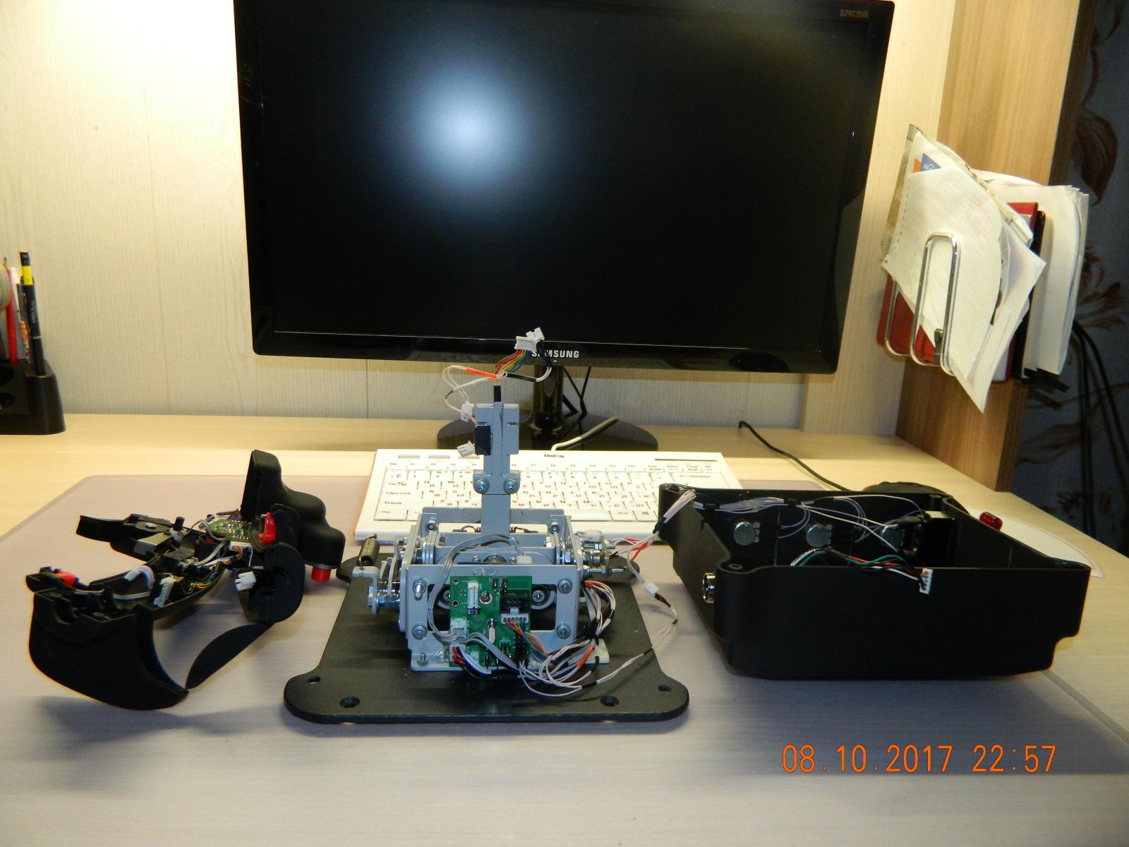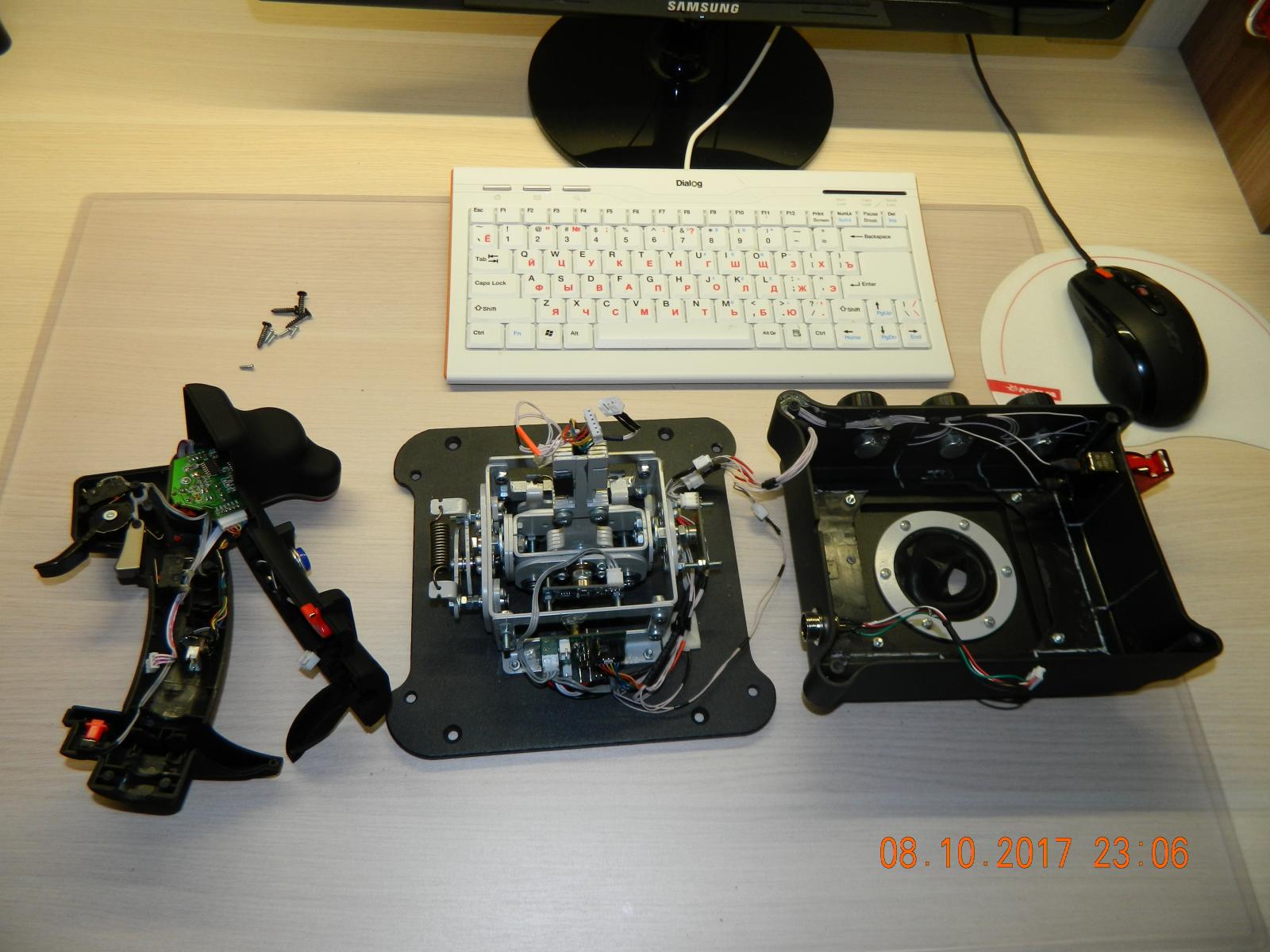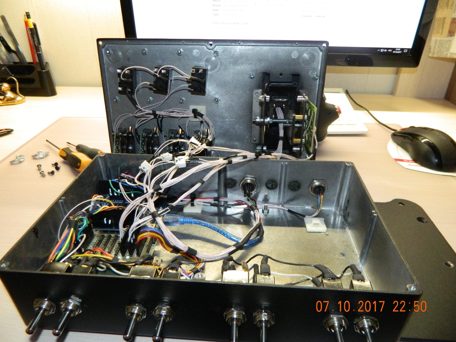 Sdelan_v_USSR Опубликовано: 21 ноября 2017 Опубликовано: 21 ноября 2017 Контроллер NJoy32 от ВКБ Версия 1.27 и 3 цифровых датчика MaRS v 4.1 – 2000 руб. РУС 7000 руб. Джойстик Cobra M5, механика от Романа. Контролер от kreml C5 mini версии 1.01. Цифровые датчики RAMS от komaroff. Дополнительные оси 3 шт. на резисторах – 2 подключены от контролера 1 от отключенного твиста. РУД 5000 руб. Корпус из алюминия, крашенный порошковой краской в автосервисе. Маленькая механика 4 шт. и большая специальная под ручку РУД «Gametrix» от DVik. На маленькой механике датчики МаГРез от Defender Cobra M5 версия 1.01 оттуда же и магниты, на большую механику не хватило, поставил датчик для основной оси от Виталия (GVL) для педалей ( у него же заказал обычный датчик МаГрез), тумблеры без фиксации (ON)-OFF-(ON) 8 шт, тумблеры OFF-ON 3 шт., все подключено к MMJoy 2 Arduino Leonardo + диодная матрица от GVL. Ручка подключена напрямую к MMJoy, то есть кнопка MODE не работает (обрезаны дорожки, при желании можно восстановить). Хоть capitanblood и подсказал как сделать, не захотел заморачиваться. Демонтирован один резистор, вместо него кнопка. Разъемы GX16. Есть подключенный вывод для подключения светодиодов WS 2812. Играл в основном в тундру, хотя задумывалось все под ИЛ 2 БЗС, но слабый комп не потянул игру, изредка вылетал в быстрый вылет. Территориально СПб. Хотелось бы в Питере и продать, включить игру, дать попробовать, чтобы все было честно и без обмана как у волшебника Сулеймана 2