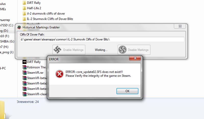 Bubi Опубликовано: 15 декабря 2017 Опубликовано: 15 декабря 2017 Ещё имеет смысл =место=, куда вы установили игру. Она д. б. установлена туда же, где находится сам =стим= Все так. Там все стимовские игры. F:\Steam\steamapps\common\IL-2 Sturmovik Cliffs of Dover Blitz Попробуй атнтивирь выключить. Не помогло