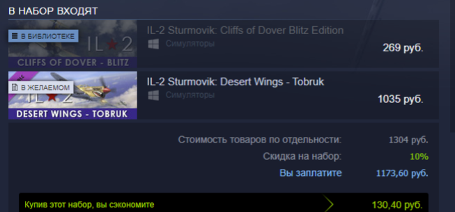 ROSS_Papa_JA2 Опубликовано: 25 ноября 2022 Опубликовано: 25 ноября 2022 14 часов назад, Botanik сказал: Камрады как купить "Ил-2 Штурмовик: Крылья пустыни – ТОБРУК"? Имею БИТВА ЗА БРИТАНИЮ BLITZ, хочу добавить Крылья пустыни – ТОБРУК А в стиме блокирует покупку?