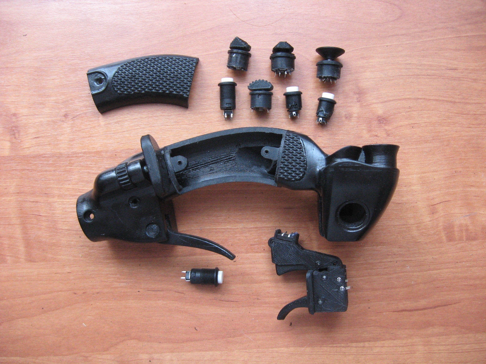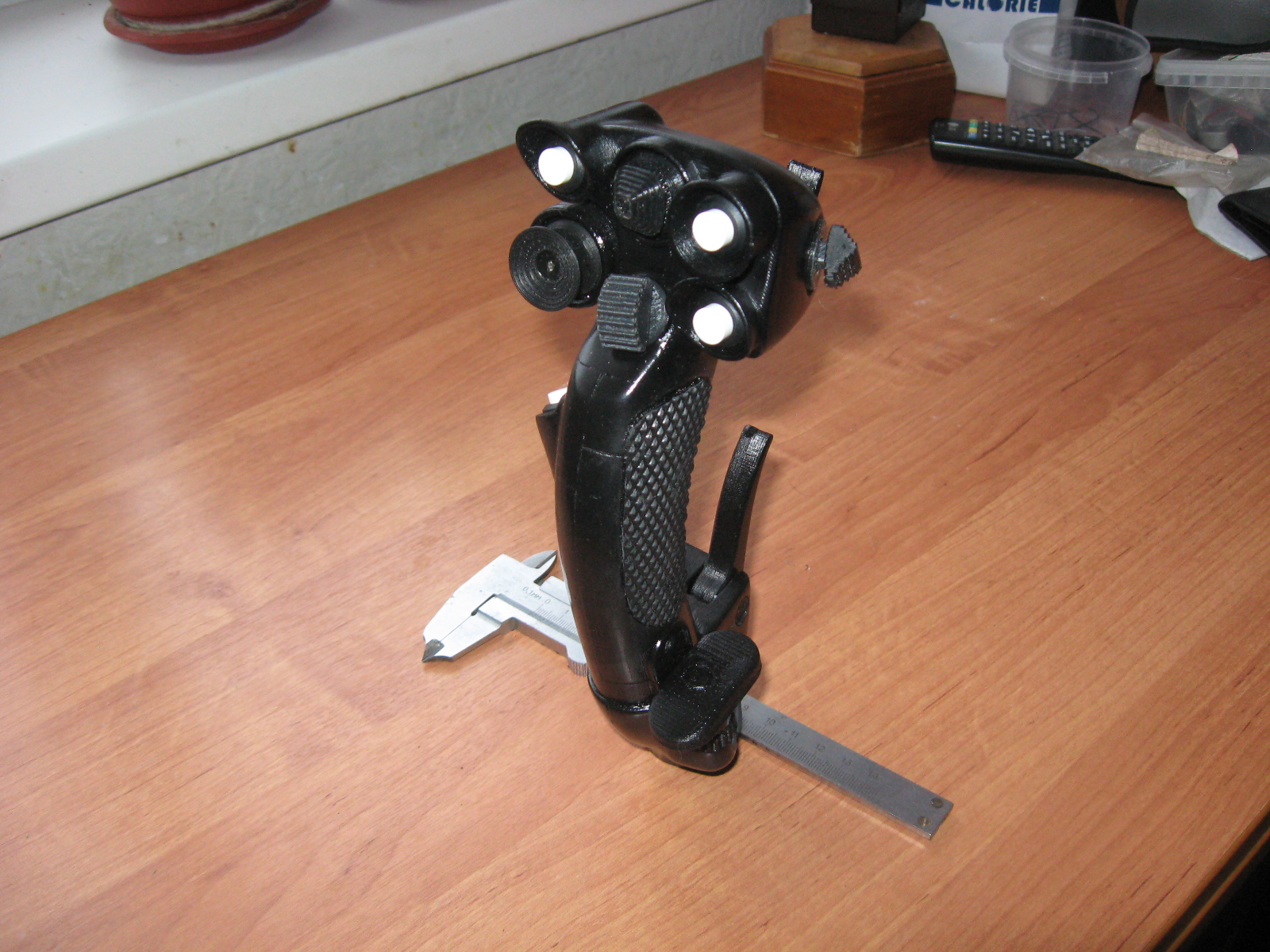 fat13cat Опубликовано: 22 декабря 2017 Опубликовано: 22 декабря 2017 Пластик АВС, гашетка управления стрельбой усилена 4-мм стальной пластиной.Резиновая накладка под ладонь.Регулируемый упор под ребро ладони.Органы управления:- 4-поз. хатка - ТРИММЕР;- 8-поз хатка - УПРАВЛЕНИЕ СТРОБОМ;- 2-поз. хатка - МАНЕВР/ТУ;- 2-поз. хатка - РК;- гашетка управления огнем - откидная (боевое/походное), 2 кнопки через ступеньку усилия (ОГОНЬ1 / ОГОНЬ1+ОГОНЬ2);- гашетка ГАШЕТКА СУ;- кнопка ОТКЛ САУ;- кнопка ПРИВЕД К ГОРИЗ;- кнопка ННПУ;- кнопка СБРОС ЗАДАЧИ;- потенциометр ТОРМОЗ.Все кнопки и хатки доработаны под клик, обеспечена быстрая замена микровыключателей.Проводка выведена в окно рукояти.Возможно изменение комплекта органов управления и проводки по согласованию с заказчиком.Цена: 5000 руб., пересылка за счет покупателя.Территориально - РФ, Хабаровск.Общаемся по делу - s_eliseev@list.ru 6