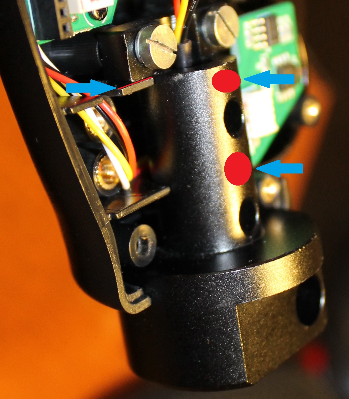 -DED-Ron Опубликовано: 22 апреля 2018 Опубликовано: 22 апреля 2018 Если не составит труда, выкрути один винт (под шлиц, не заводской, уточняю) и сравни с заводским по длине. Или покажи точный размер, если есть чем измерить. Не стоит здесь использовать локтайт - при задаче открутить, нужно будет приложить либо "вырывающее" (для латуни в пластике) усилие, либо нагрев винта - что одночленно для пластика. Повторюсь - при затянутых винтах никаких движений (по зеленой и красной стрелке) переходника не должно быть. А так получается, что винты для интерьера. Если наворачиваем несколько слоев изоленты на переходник, то, естественно, возникает зазор в другом месте (на картинке). Предлагаю проверить этот зазор (его отсутствие в дефолте) при удалении винтов и изоленты. Его и нужно устранить, при наличии, чтобы винты заработали.