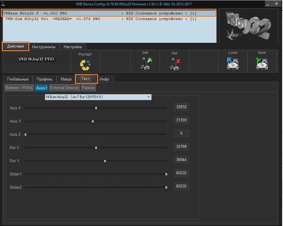 Vumpel18 Опубликовано: 17 апреля 2021 Опубликовано: 17 апреля 2021 (изменено) 11 минут назад, Aflay сказал: На №7 у меня не слайдер, а Z и № 6 вообще нет галочек! Как сделать конфигуратор на русском языке? Ось твиста определить с помощью конфигуратора, см. в закладке "Тест". Скрытый текст Русский см. 1-й пост: http://forum.vkb-sim.pro/viewtopic.php?f=15&t=908 Изменено 17 апреля 2021 пользователем Vumpel18