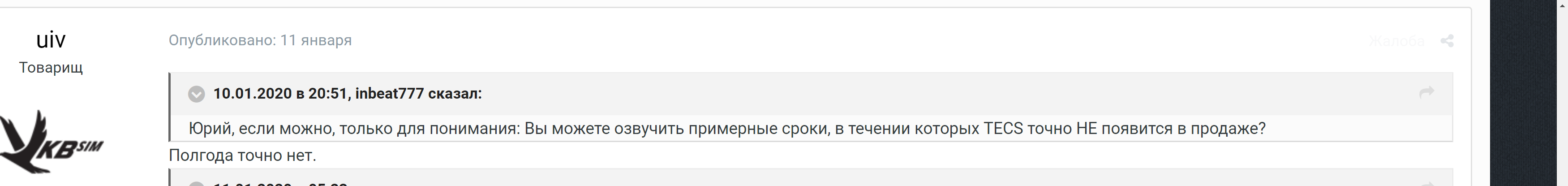 uiv Опубликовано: 8 мая 2020 Автор Опубликовано: 8 мая 2020 ТЕКС выйдет в этом году. Работа идет полным ходом. 9 1 2