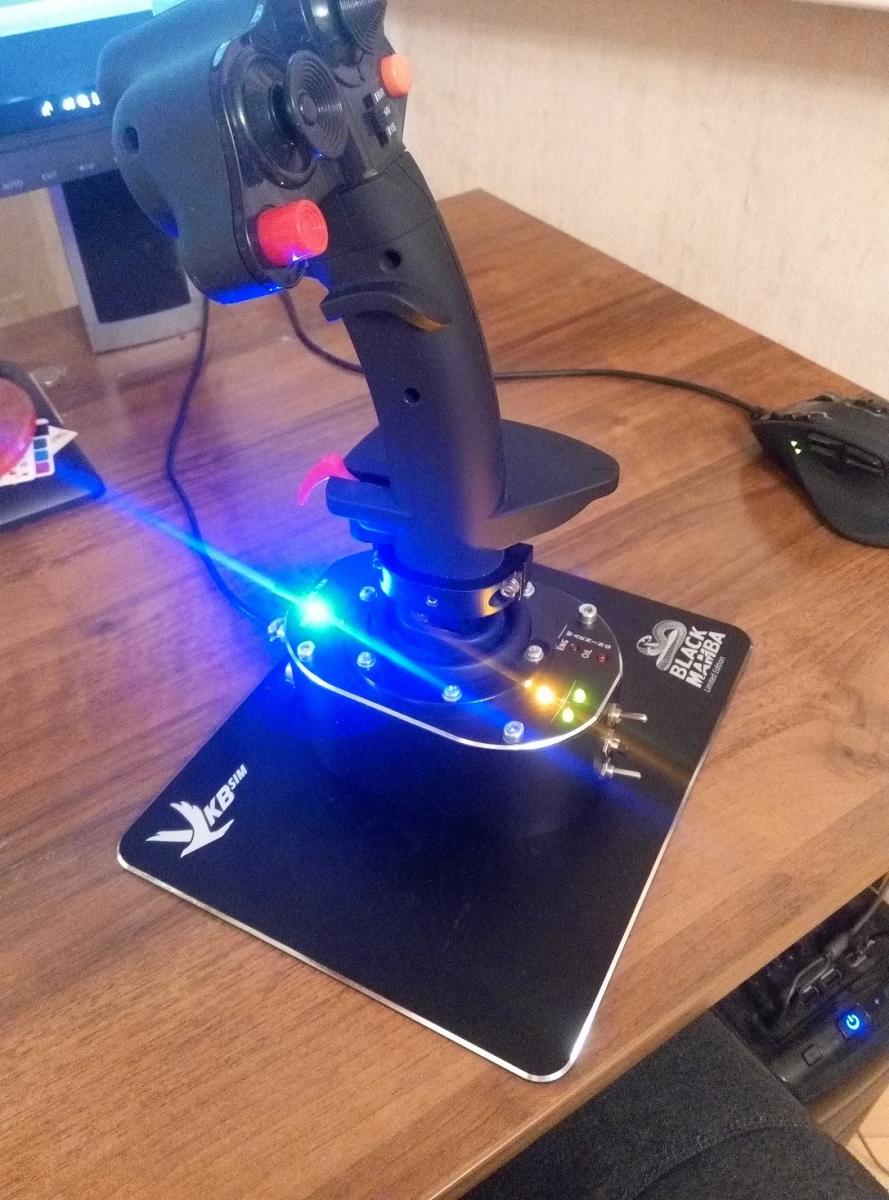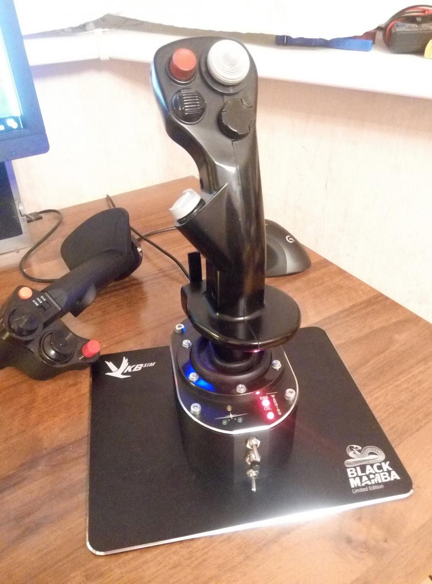 Gorka Опубликовано: 1 февраля 2018 Опубликовано: 1 февраля 2018 Продаю мамбу на ммjoy'е. Основные Оси - Tle 5010, ось триммирования - переменный резистор. Разъемы USB и BUS - заменены на "авиационные". Разъем BUS свободен для подключения педалей/блока кнопок/всего что придет в голову. На переднюю панель добавлено: 2 тумблера с фиксацией в крайних положениях и одна кнопка без фиксации.. В комплект входит: Black mamba mk2 с оригинальной ручкой. Ручка Cougar с адаптером для вышеуказанной механики. Пластина для подстульного монтажа. Комплект пружин. Цена за все - 12000р. Возможна продажа как полного комплекта, так и отдельных позиций. Территориально Москва. 1