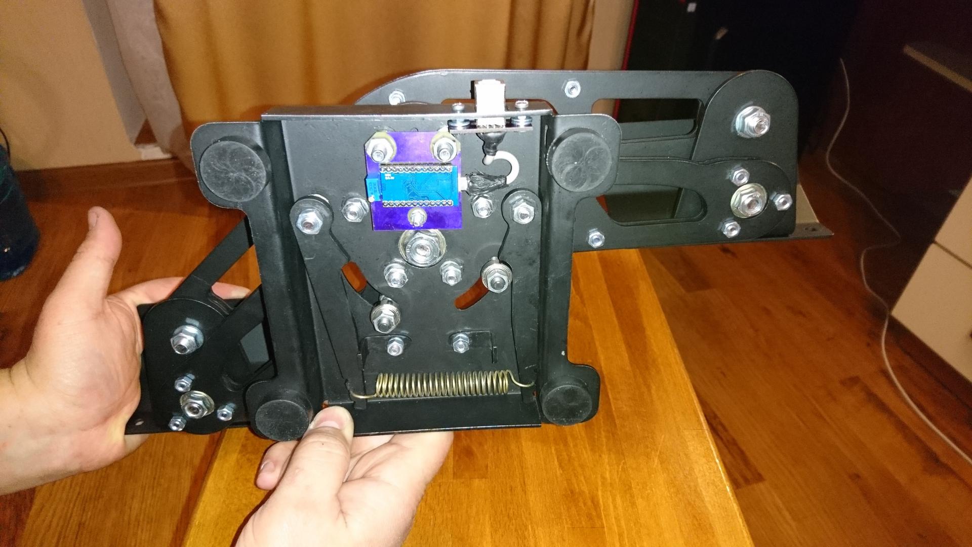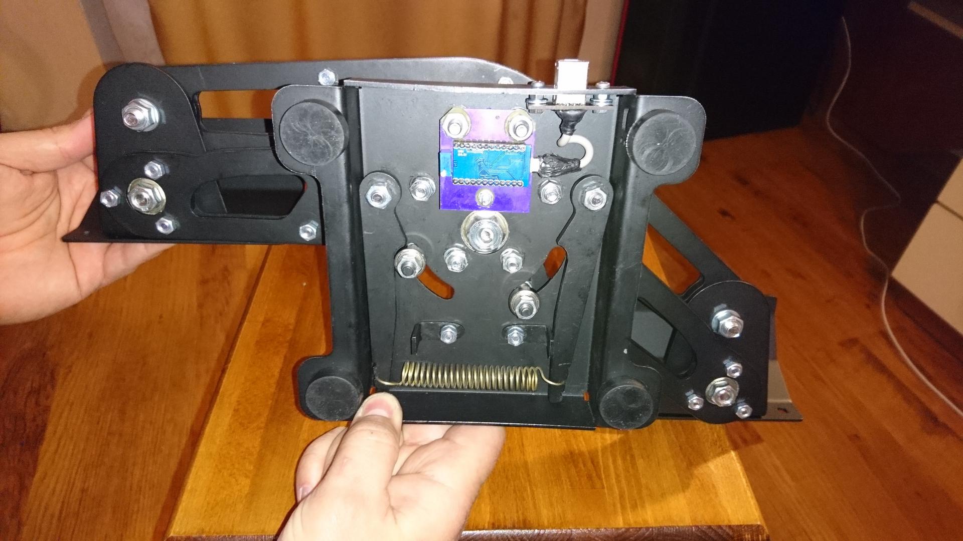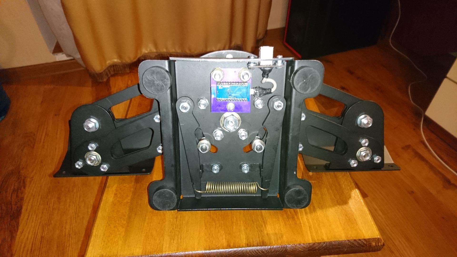 Stranger Опубликовано: 4 февраля 2018 Опубликовано: 4 февраля 2018 Продам педали. Два вида: одни черные, более сложные, и вторые серые, немного проще. Нахожусь в Киеве. Первые - это черные: сделаны из листового металла, на подшипниках, механизм загруза и центровки клещевого типа, спрятан внутри корпуса. Контроллер Ардуино, датчик МагРез. Педали полностью готовы. Цена этих педалей 110 дол. в эквиваленте, то есть для Украины это 3100 грн. Вторые - это серые. Тоже из листового металла , на подшипниках, механизм загруза другой, без упоров, центрируется формой самих рычагов, сам механизм находится снаружи. Контроллер Ардуино, датчик ТЛЕ. Готовы не полностью (надо поставить электронику и поменять рычажки механизма загруза). Выложены для изучения интереса. Будут готовы к продаже ориентировочно через неделю Цена этих педалей 95 дол. в эквиваленте, то есть для Украины это 2700 грн, 1