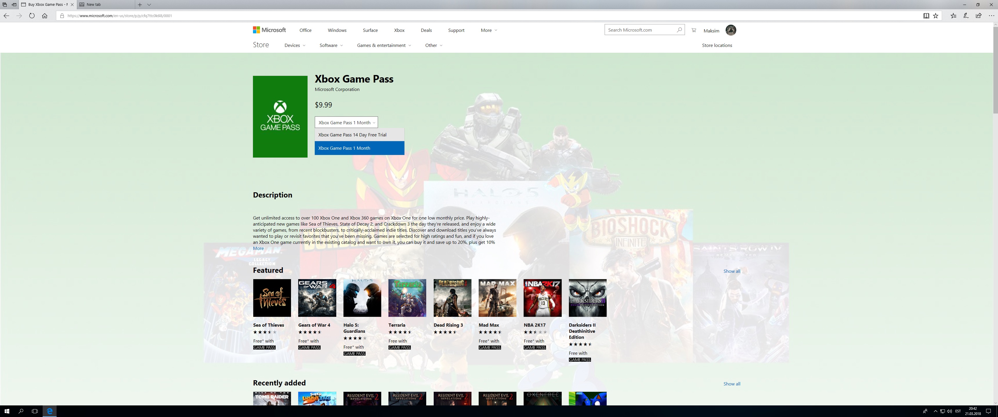 DasMaximus Опубликовано: 21 марта 2018 Опубликовано: 21 марта 2018 (изменено) Похоже что можно взять Xbox Game Pass на месяц за 10 баксов и в него входит и эта игруля. А еще похоже, что можно использовать Xbox Game Pass 14 day trial , таким образом 14 дней бесплатно попробовать игру. Скрытый текст Изменено 21 марта 2018 пользователем DasMaximus