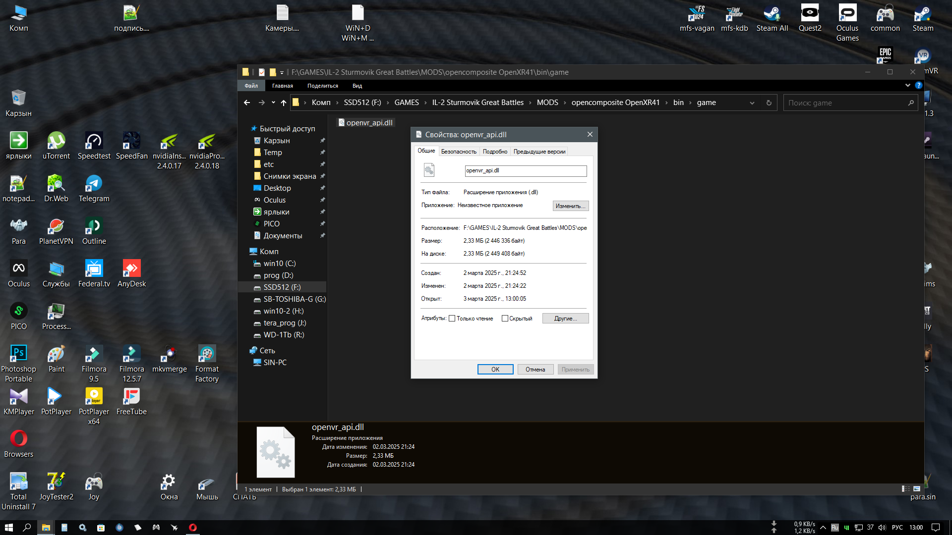 huligan Опубликовано: 2 марта Опубликовано: 2 марта (изменено) 1 час назад, Trac_82 сказал: как правильно сделать? заменить дллку в папке game на эту https://znix.xyz/OpenComposite/download.php?arch=x64&branch=openxr если с хома,то там кнопку с OpenXR нажать,если с VD,то там VDXR выставить 1 час назад, Trac_82 сказал: повторно она не запускается возможно висит процесс в диспетчере il-2.exe закрывай принудительно ...но с перезагрузкой-эт как то слишком жестоко комп висит,чтоб аж так никогда не сталкивался Изменено 2 марта пользователем huligan 1