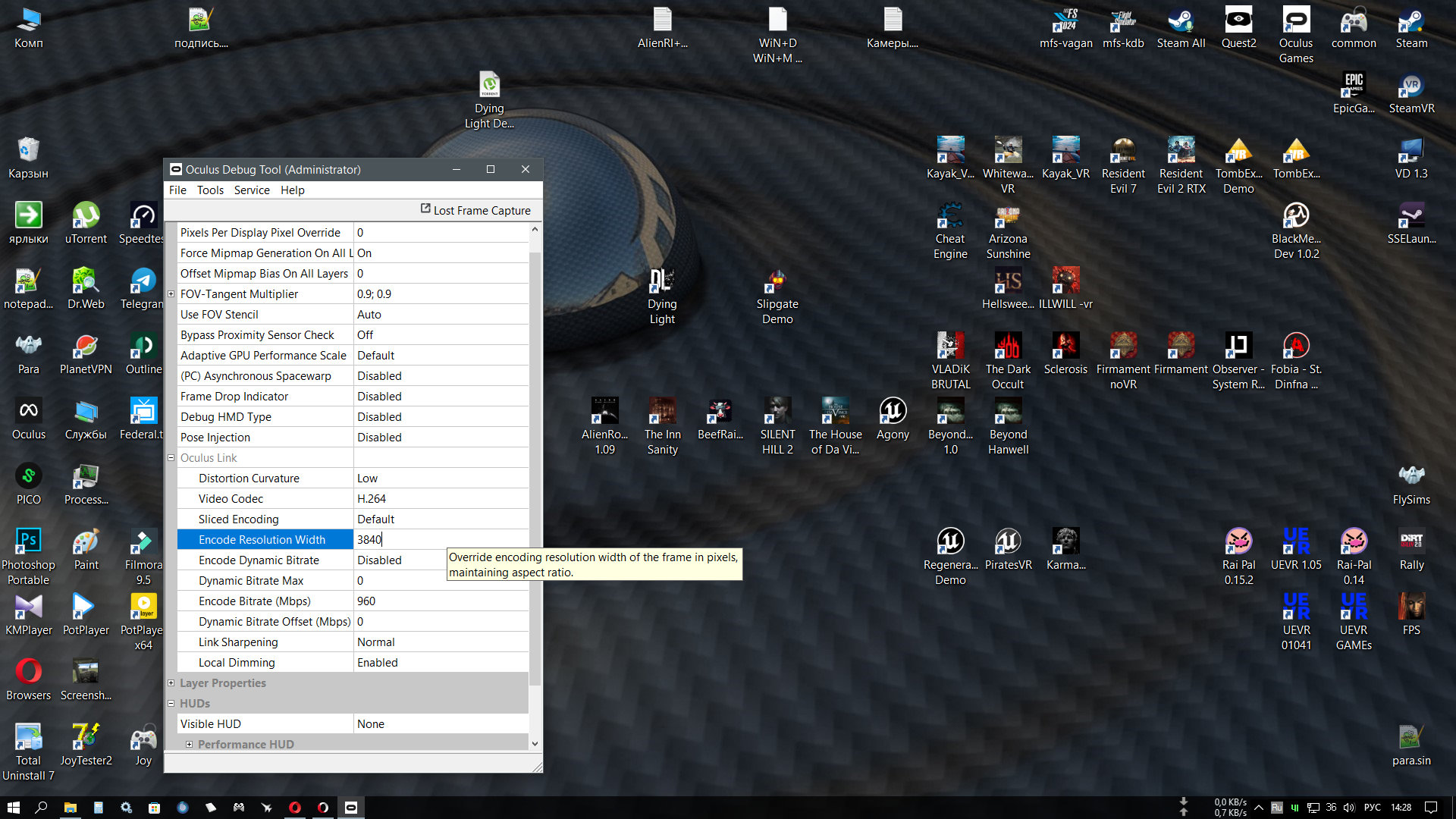 SDV_DecabrisT Опубликовано: 13 апреля Опубликовано: 13 апреля у меня там по нулям вообще всё стоит. Попробую поиграться. Но может SteamVR своими настройками перебивает?